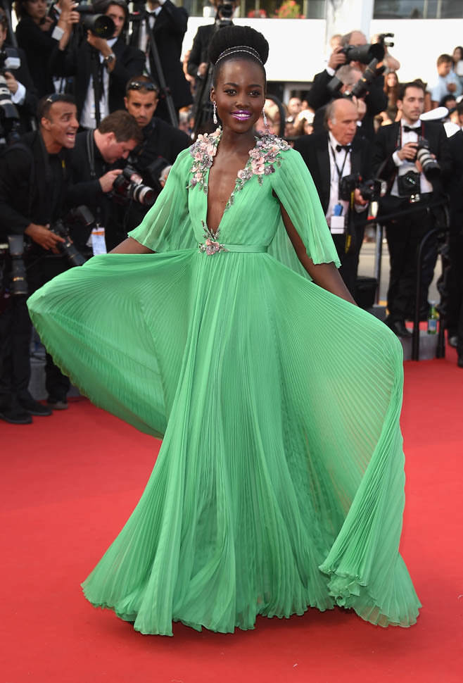 Like Julianne and Naomi, Lupita also went with a plunge. It’s such a Lupita look, this. The pleats, the vibrant colour, and the one wing at the back like a cape? LOVE SO MUCH. The only tweak I would make to this? I don’t think the flower detail at the waist is necessary. I think the shoulders would pop way more if it wasn’t there.