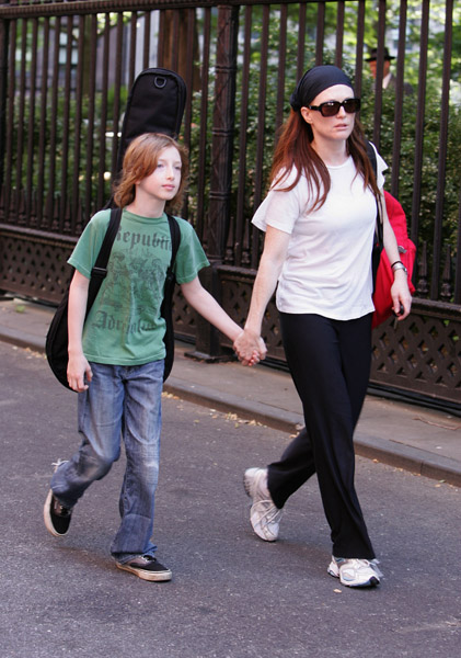 Julianne yesterday with her son in New York - total gorgessity. Can you believe no Oscar…but Hilary Swank has two???