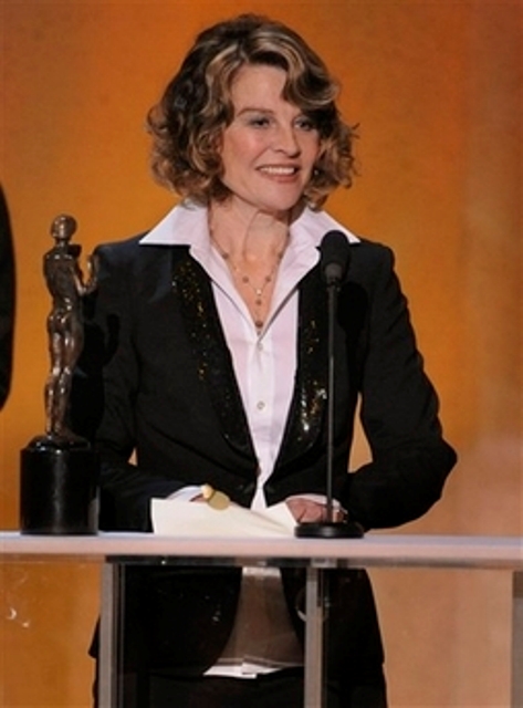 But enough about acting…how about the way Julie Christie owned the carpet last night? The pantsuit with the sequin detail totally made my life. Sexy and sassy and appropriate…why can’t my mother dress like this? Why must she insist on Elvis inspired denim suits and runners with rhinestones?
