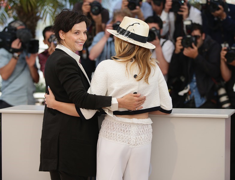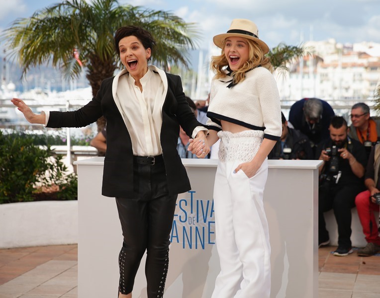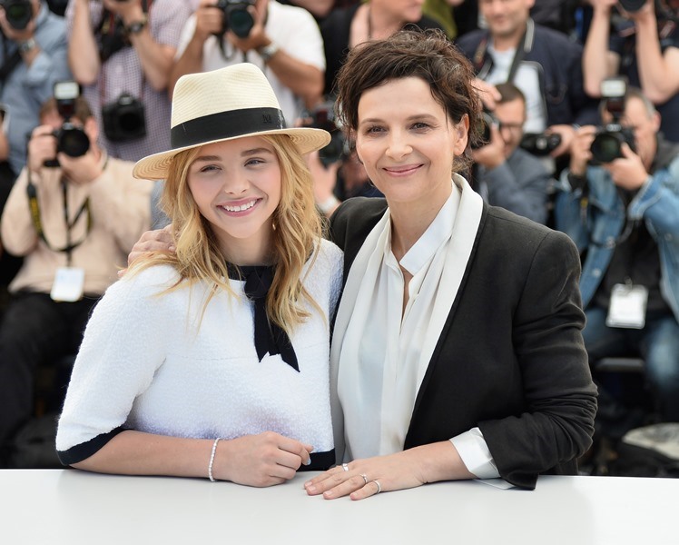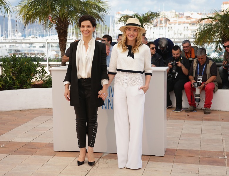 Juliette Binoche and Chloe Moretz were in Cannes today at the photo call for Olivier Assayas’s Clouds Of Sils Maria. Have you seen the trailer? It looks great. Binoche plays an actress who has to contend with a younger, bratty one. The relationship mirrors her connection with her assistant, played by Kristen Stewart. We are passing the Bechdel Test over and over again in this film.