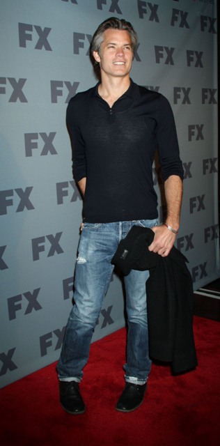 Attached - Timothy Olyphant last week with family (wife?) and at the FX Sales Upfront in New York.