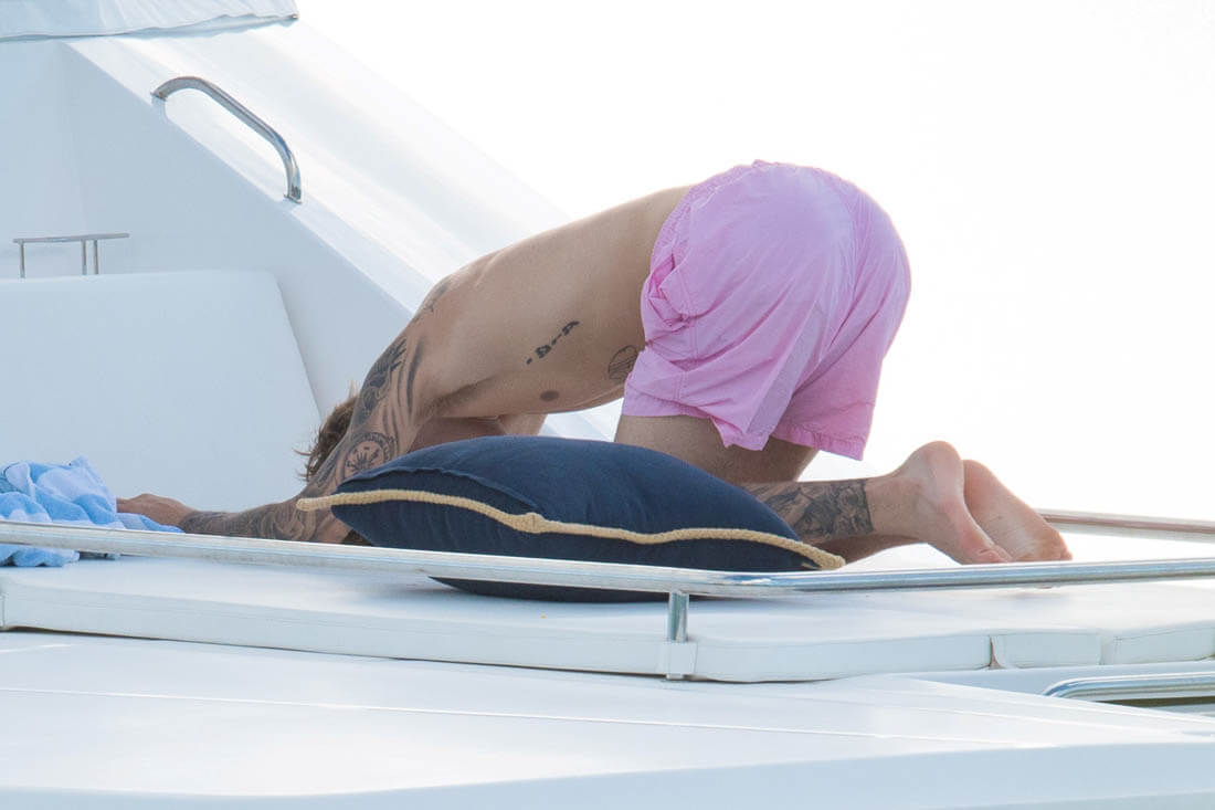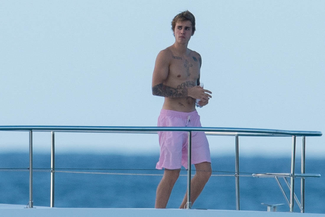 Anyway, Justin Bieber is in Barbados too. And he too was on a yacht in pink shorts yesterday, hanging out with his young siblings and spending some time alone, contemplating life, looking for answers in the ocean. JB is really feeling his body right now. He’s giving us a lot of posing. And he must be in a great mood, now that he’s on break from touring, because he was stopped on the beach by some girls and was nice enough to hug them instead of lecturing them about disturbing his peace. He won’t be there much longer though. JB is scheduled to perform in Miami at Fontainebleau for New Year’s Eve. His dad is probably more excited about that than he is. Dad, by the way, was also in pink shorts.