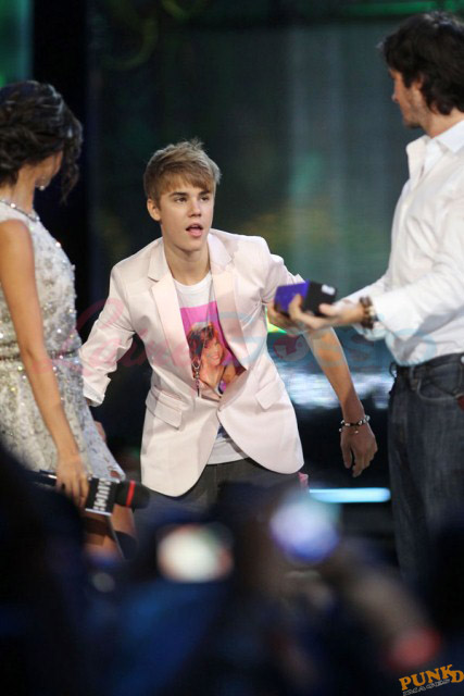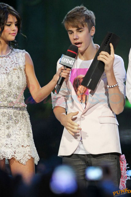 Bieber was not on the presenter or the guest list last night at the MuchMusic Video Awards. His girlfriend however was co-hosting. And, well, it wasn’t exactly a surprise then that he showed. To collect his awards, sure, but also, you know, because it’s teen romance and that’s just how that sh-t works.