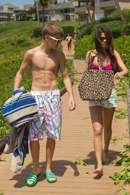 But that only lasted a few minutes until I turned on my computer and saw these shots of Justin Bieber and Selena Gomez which are making me SO happy. They were at the Billboard Awards this weekend where the little guy cleaned up and kissed his gf on camera. Now they’re on holiday together in Hawaii, spotted holding hands upon arrival, and then heading to the beach, all grown up and sh-t and sucking in their stomachs.
