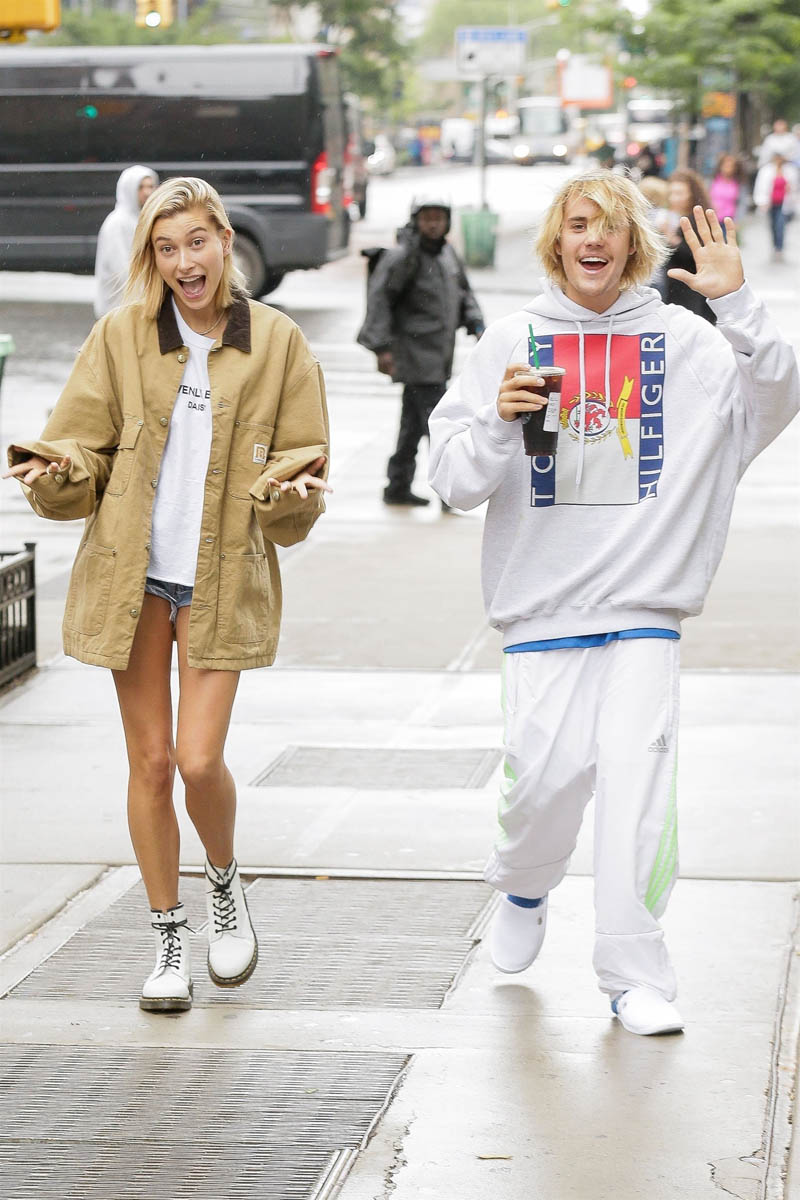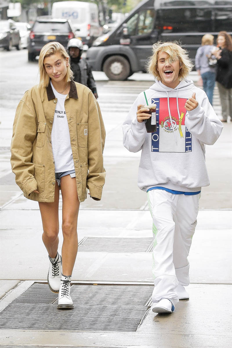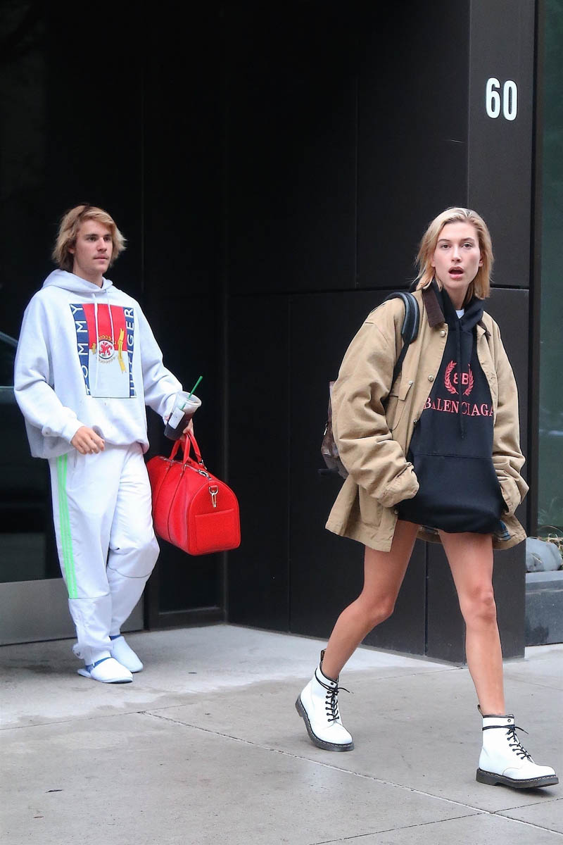Attached - more shots of Justin and Hailey together in New York the other day.