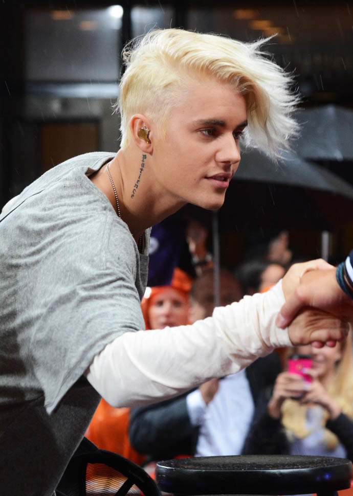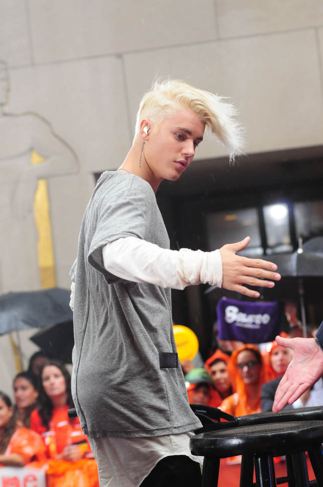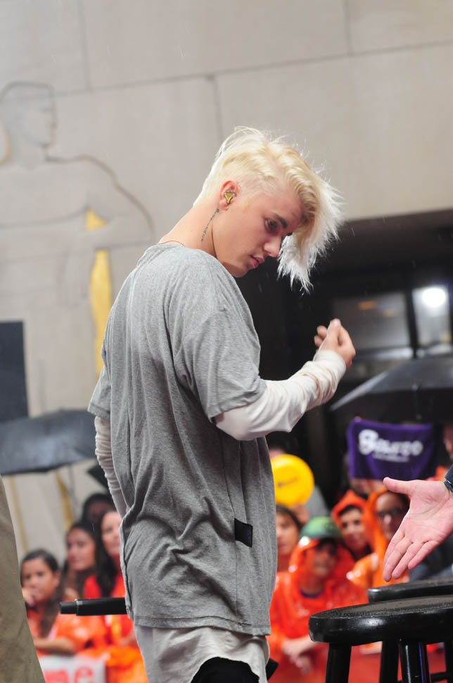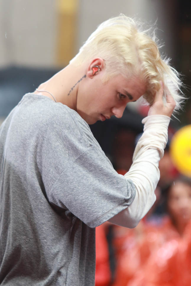 Justin Bieber performed today on The Today Show. With some new hair. 99% of you are probably rolling your eyes. I'm in my own corner, digging the sh-t out of it. But I have a thing for platinum blonde hair, cut short on the sides, floppy on top. I was into it when Brad Pitt did it and I was into it when Jacek did this like right when we started dating. I may have mentioned it before. Because that’s how much I can remember it turned me on.