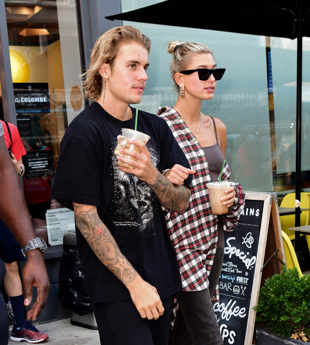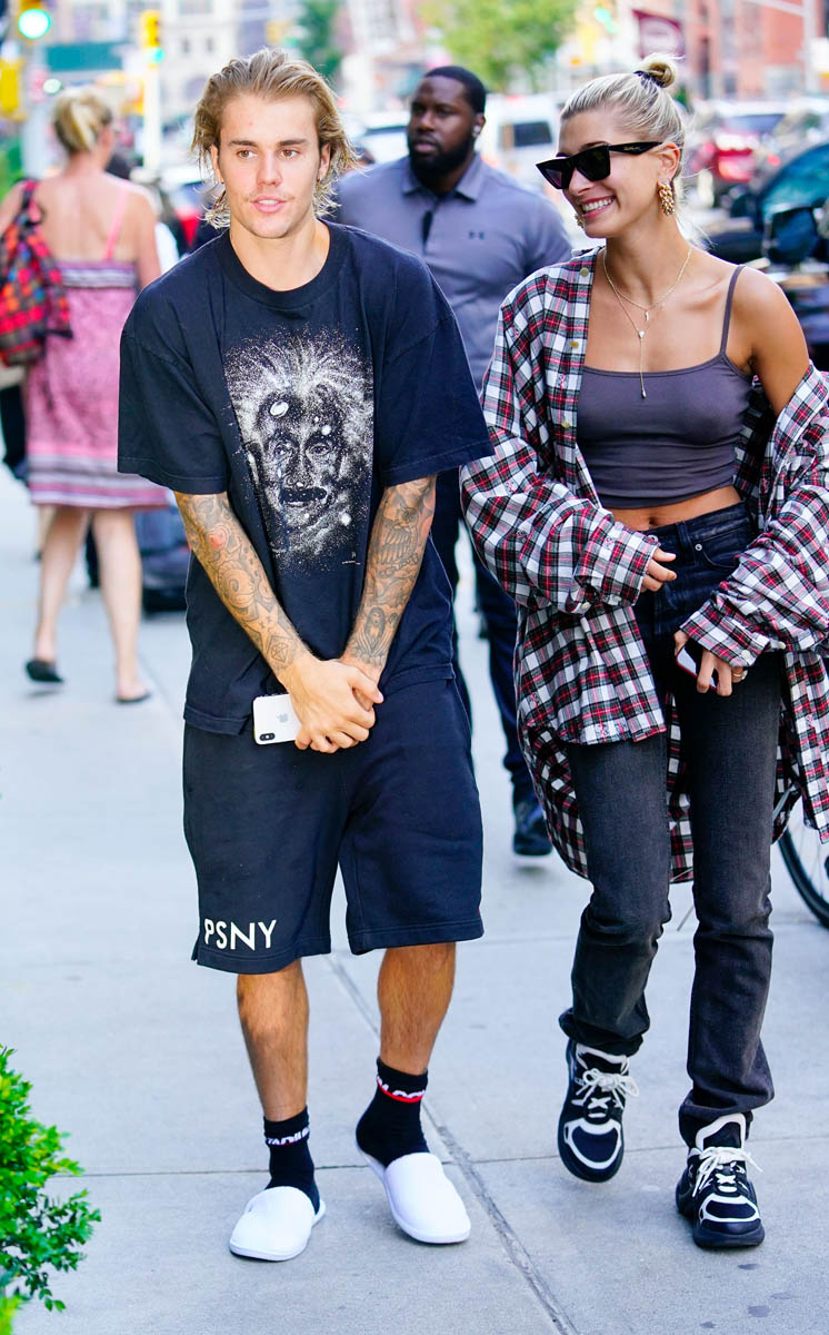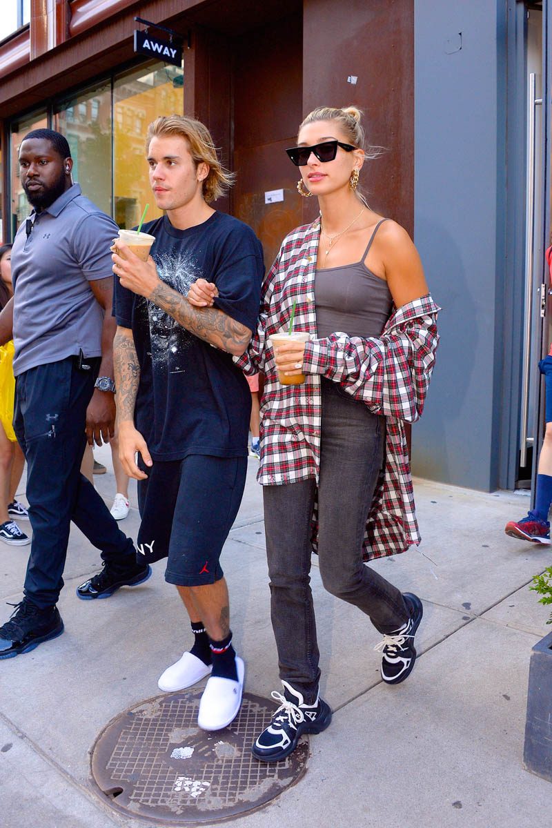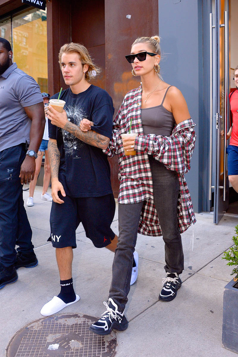 Hailey is looking on so adoringly while Justin gets his haircut; this is the only logical explanation. She seems very relieved that Justin is finally washing his hair but my question is this: did Hailey get a say on the final style? I’m always trying to convince my dude to do his hair certain ways and he never listens to me. The reveal photos of Justin’s cut are only slightly better than his un-showered wannabe Kurt Cobain aesthetic. At least it looks clean? The mullet is still there. Maybe Hailey is taking baby steps to get Justin back to a presentable point just in time for the wedding. Next step: wardrobe. God, this outfit is awful.