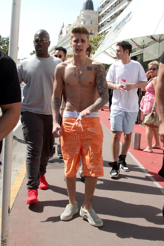But then Justin Bieber came this year and decided he would take his shirt off as often as possible since Matthew McConaughey doesn’t do that anymore. Here he is, walking around the Croisette, giving you the moists between your legs.