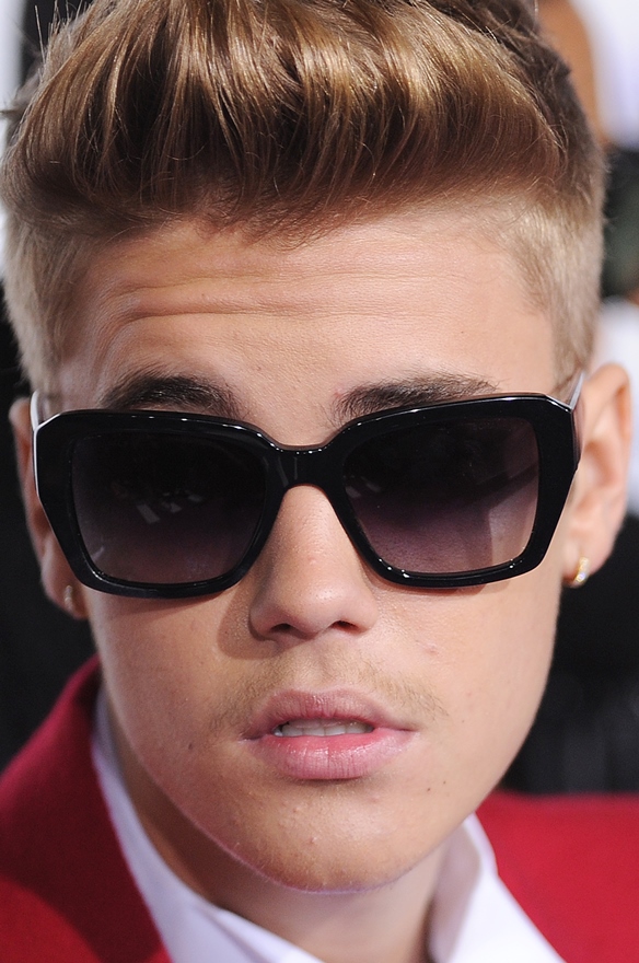 What I love most about this look though is what’s happening with the hem of the pants. Can you see that? They’re tucked under. The way some of us might tuck our jeans. Except they’re not STILL bunching around the ankle after the adjustment. Because we don’t wear them half way down our asses. The problem here is that he doesn’t want to just cut them. You know why? Because if he cuts them, they’d look like baby pants on a hanger. Bieber isn’t tall. And he’s still waiting for himself to grow. He so desperately wants to grow. Running out of time now…