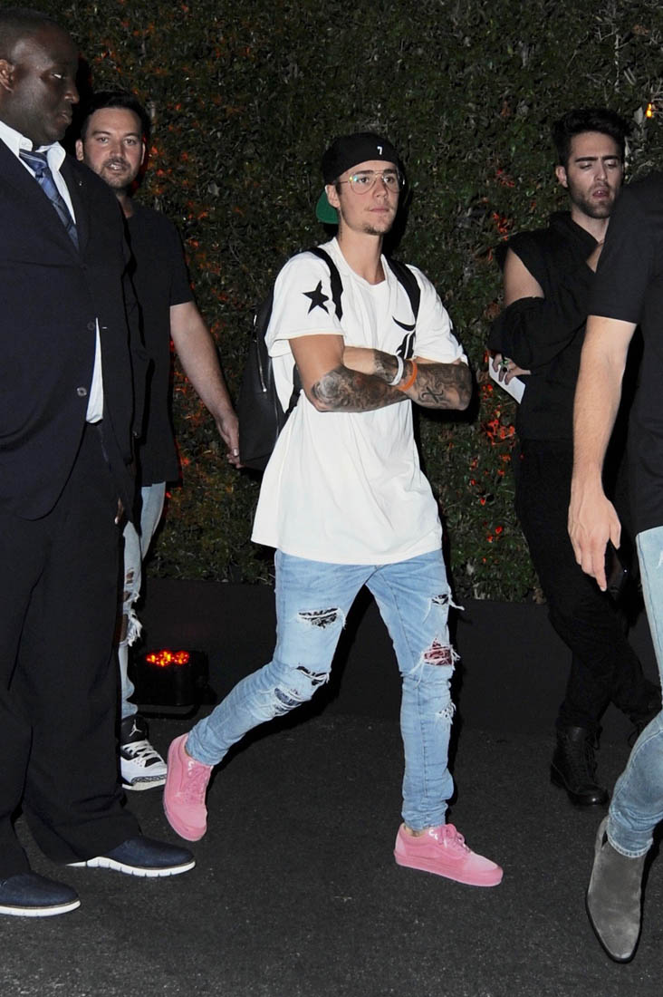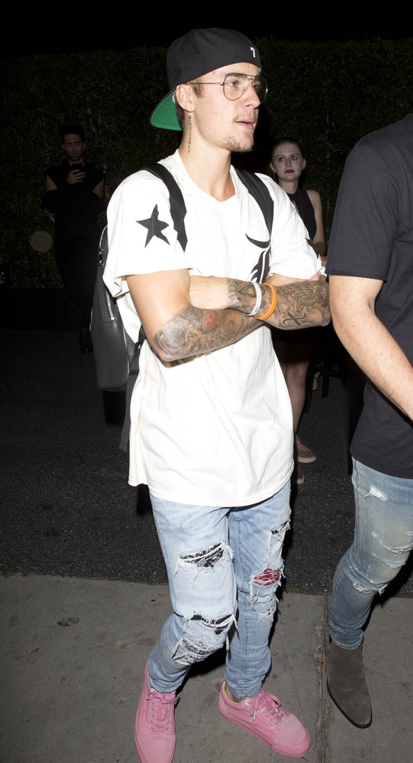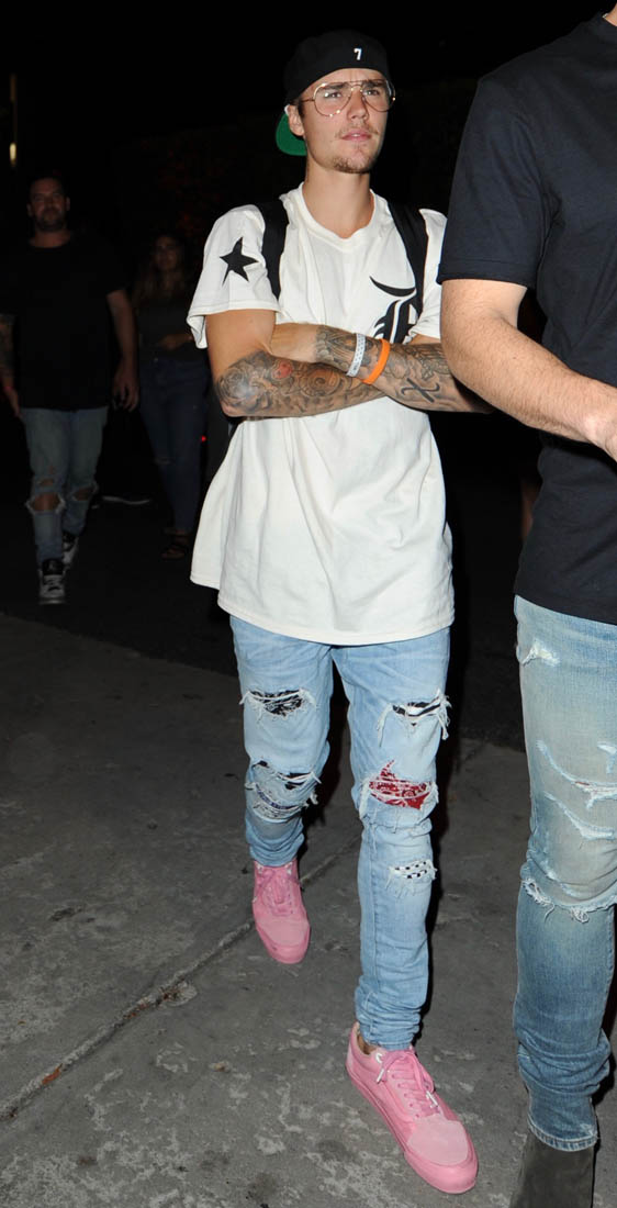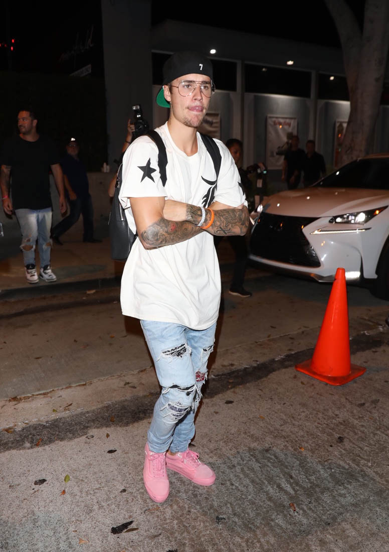 Justin Bieber has his own line of plain white t-shirts now. It’s a collaboration between Hanes and his stylist Karla Welch who was ranked #1 on The Hollywood Reporters Most Powerful Stylists List. Karla also styles Ruth Negga and Sarah Paulson. The t-shirts came about because JB was always asking Karla to MacGyver his tees. He likes to wear them longer but more straight to the body with an asymmetrical hem. The launch for the collection was last night in LA. You can see the styles here, all for $30. I appreciate that there is no v-neck. I HATE a v-neck tee.