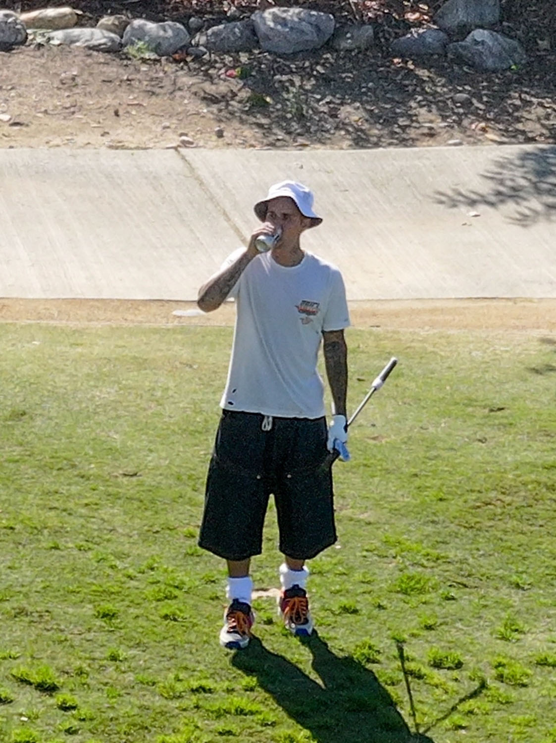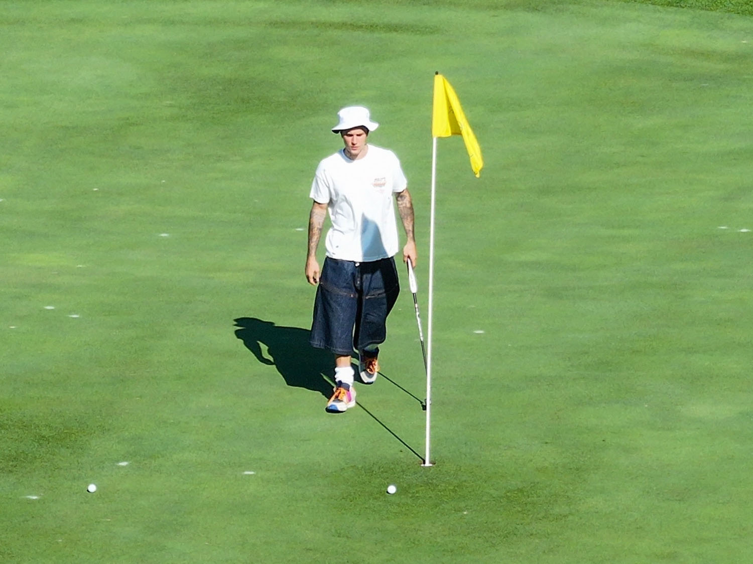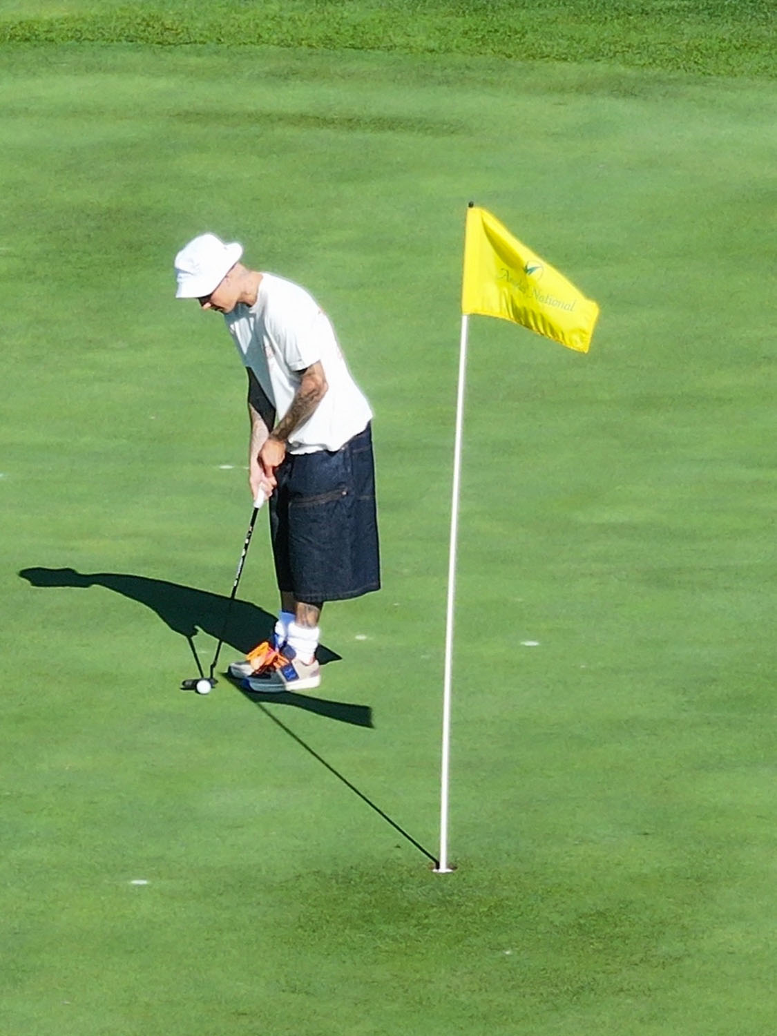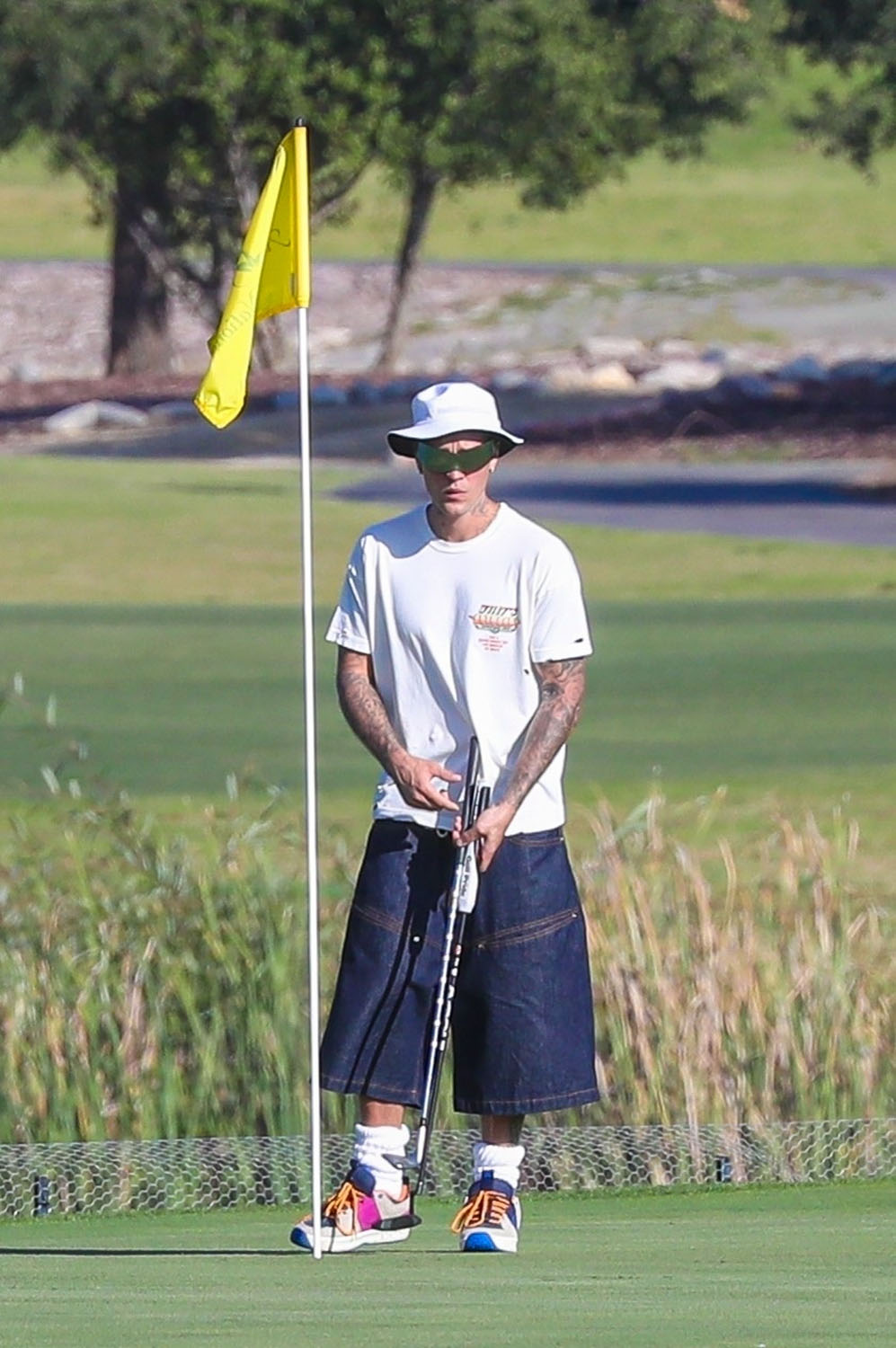 What’s more notable, to me at least, is what Justin is wearing. At the fancy ass clubs where he would be playing, there are dress codes – clearly they don’t apply to celebrities, but if anyone else rocked up to the course in jean jorts they’d be told to change because the crusty f-cks who manage those places are super tight ass about attire. And exceptions only happen when you’re Justin Bieber or equivalent, not to a regular degular.