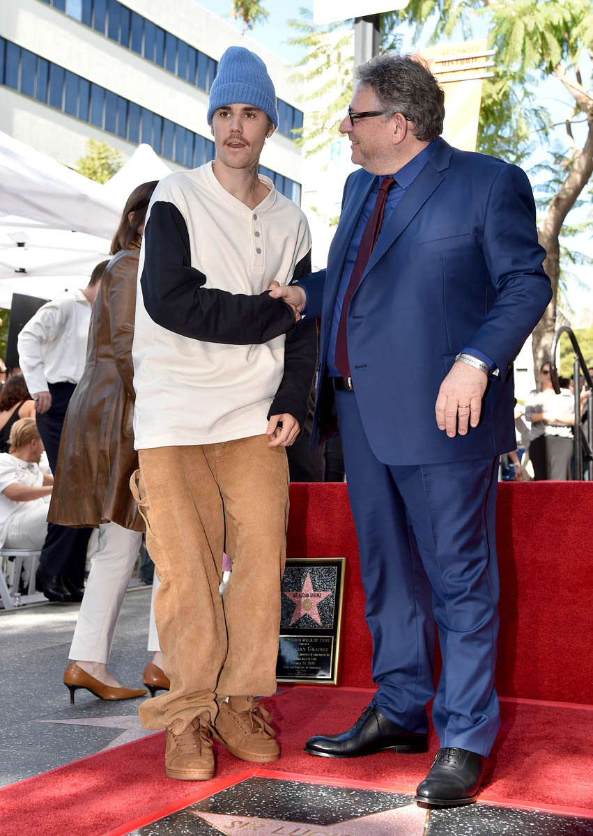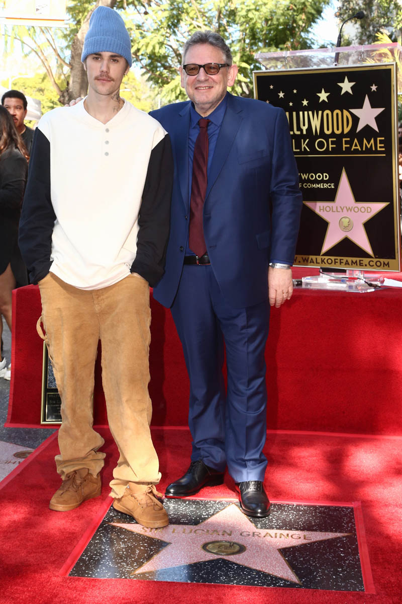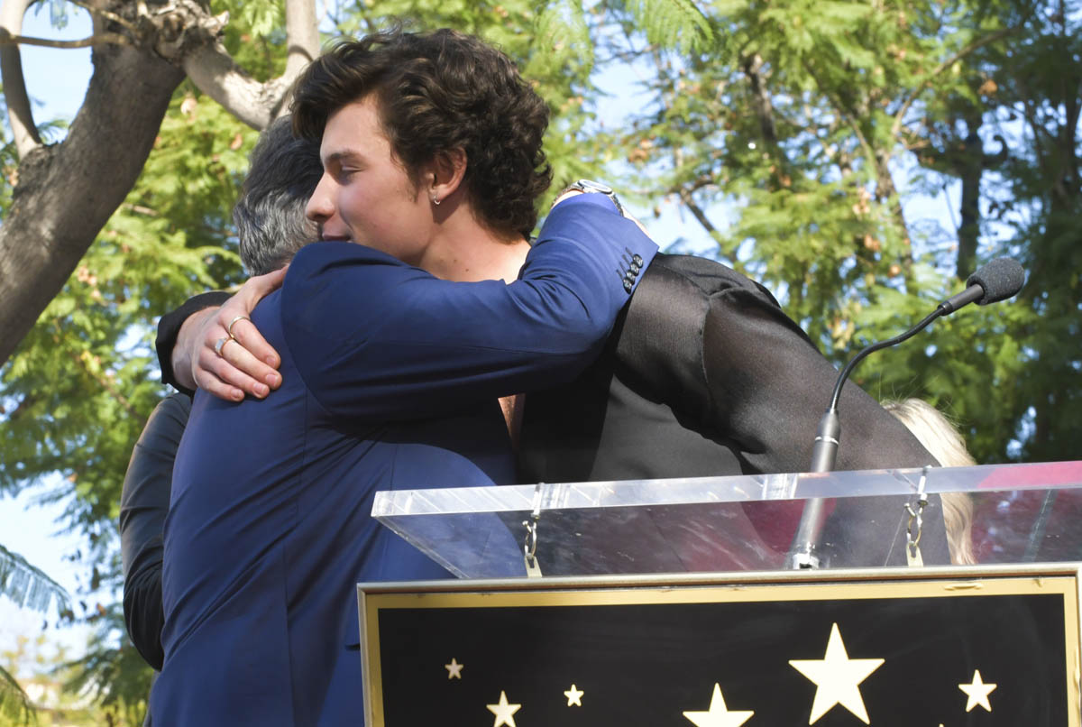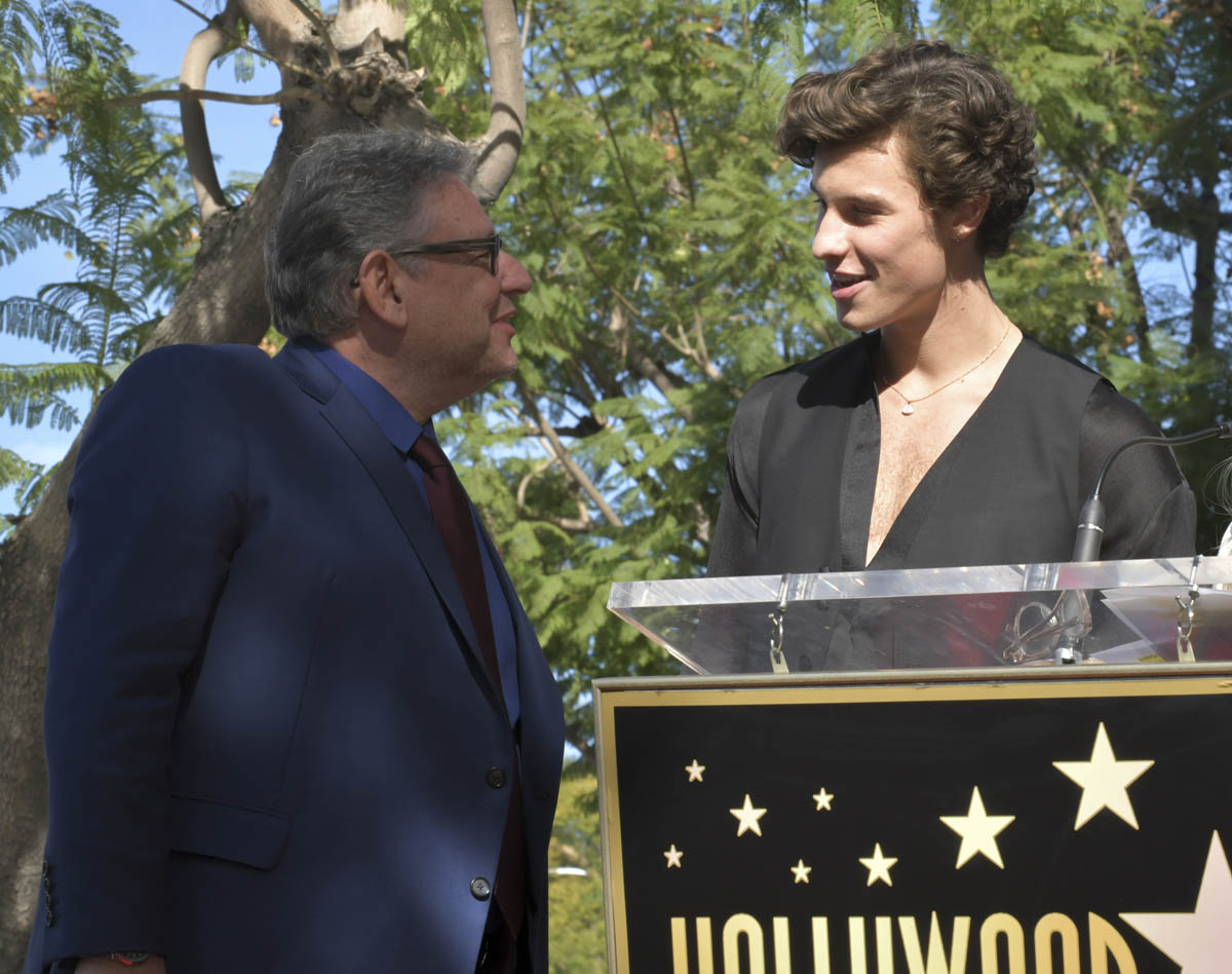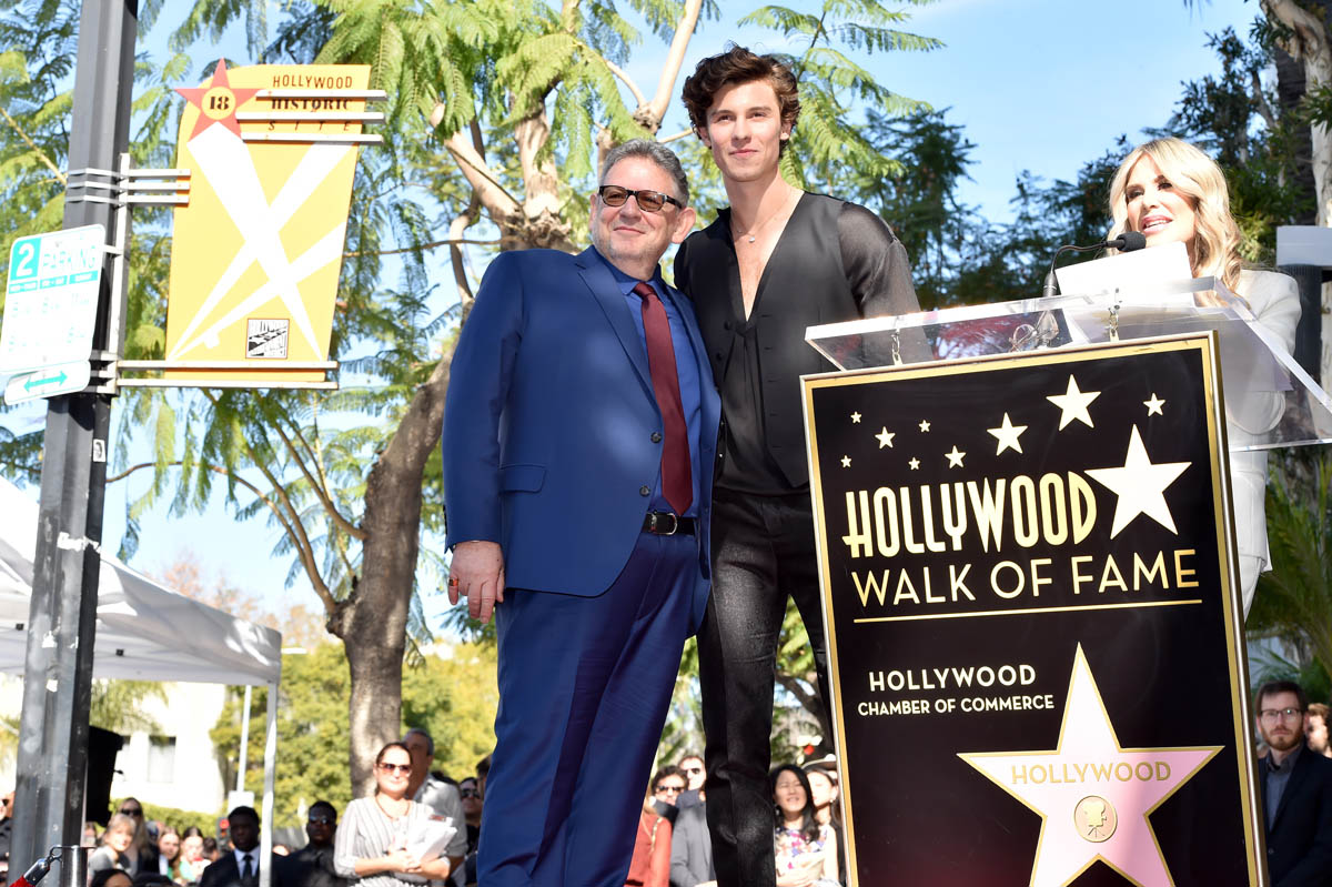 Music executive Lucian Grainge received his star on the Hollywood Walk of Fame yesterday. Lucian is Universal Music, the label that’s propelled the rise of several of current music’s biggest names, including Justin Bieber and Shawn Mendes. Which is why they were both there yesterday. They all took photos. They performed enthusiasm and gratitude as it expected at these occasions. But JB and Shawn did not give up a shot of them, together, side by side.