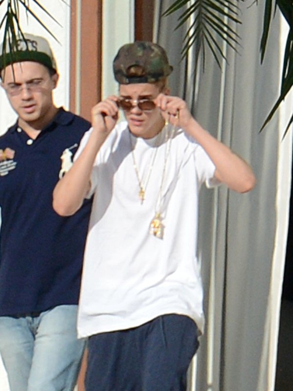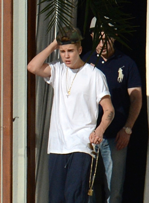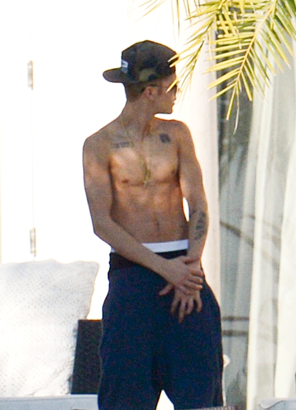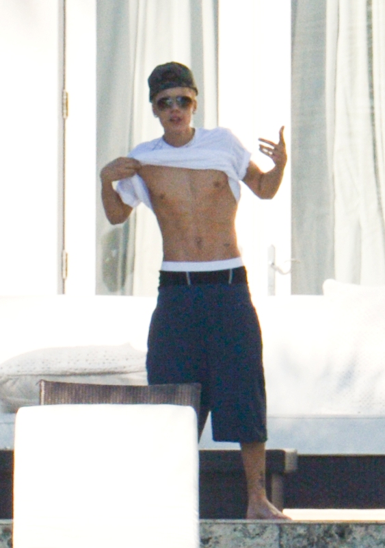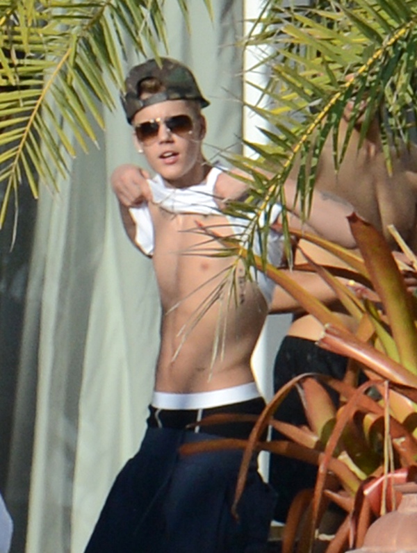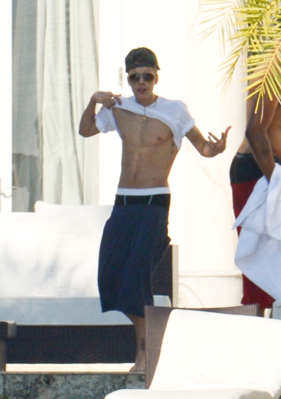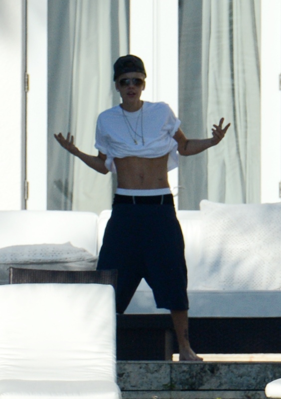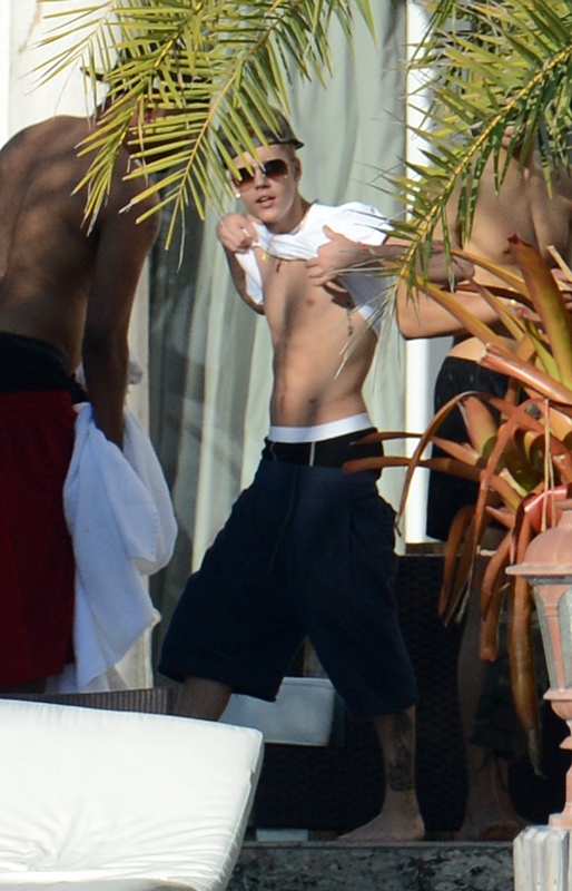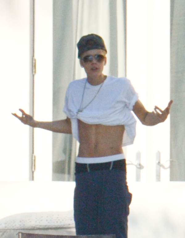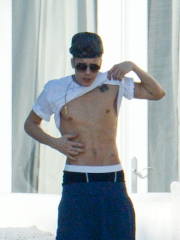 I kind of get what’s happening here. Justin’s been bulking up, he’s single and these pictures will certainly have the fan girls screaming extra hard for the next week. Also, I’ve been an 18 year old boy hitting the sexual crescendo of puberty, so I sympathize with the awkward sexual expression taking place on this hotel terrace. When you‘re in the mood to actually f-ck everything that exists in the whole world, showing some skin to the masses probably seems like a real fun way to spend the afternoon.