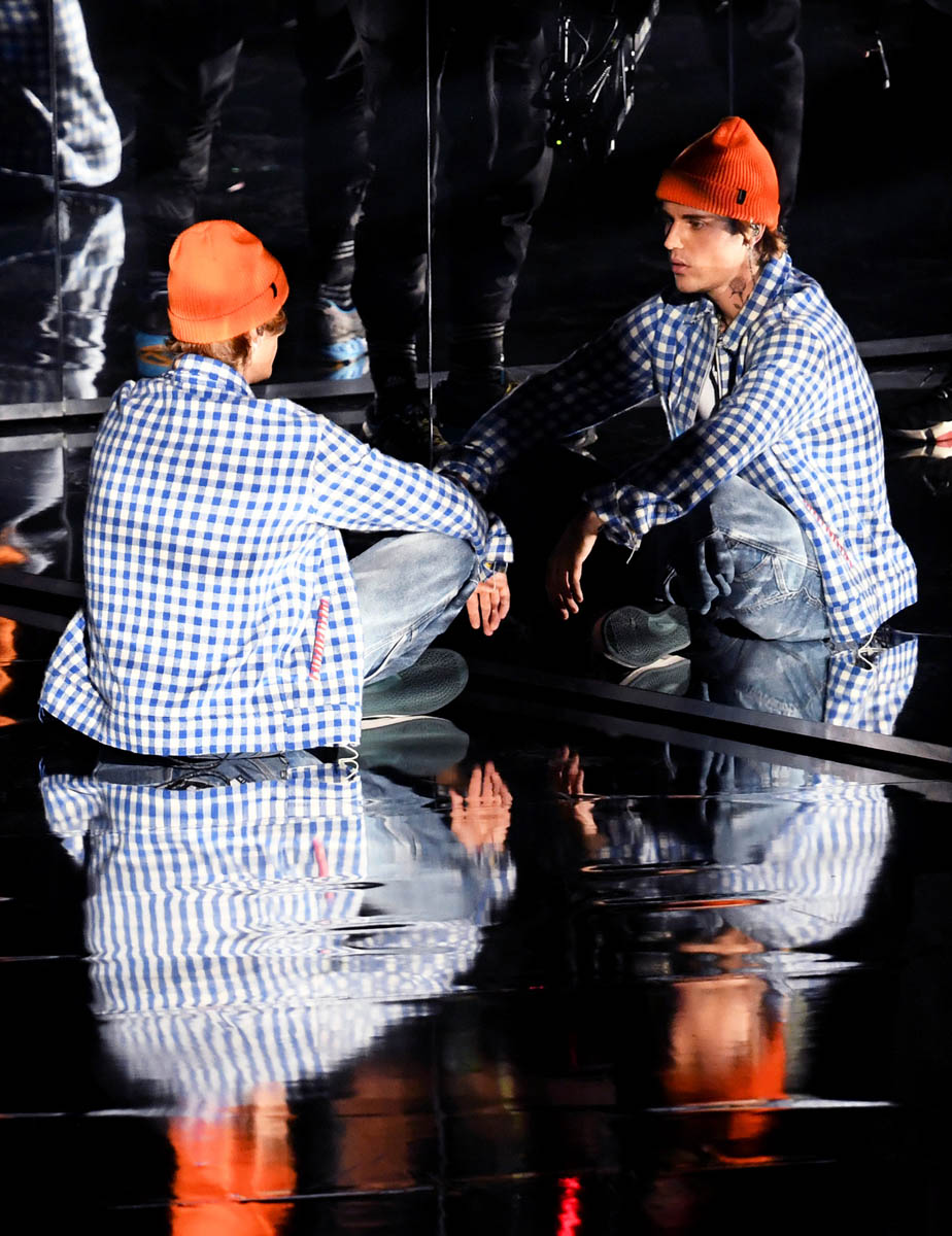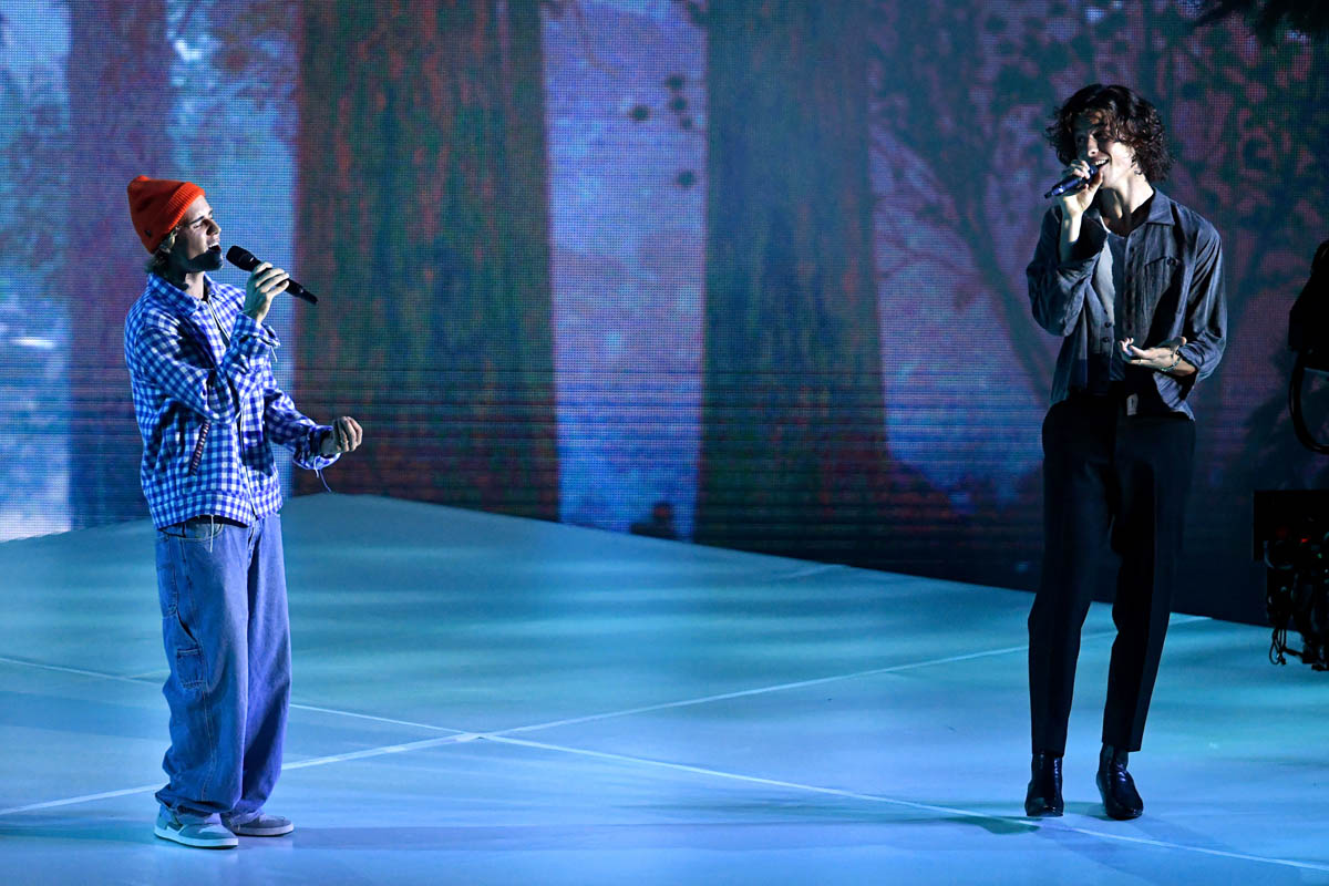 JB’s two solo songs then led to his joint performance with Shawn Mendes and their new song “Monster”. As Cody wrote last week, it’s a jam. I do like it. But … is there a reason they don’t interact at all?! In the video they barely acknowledge each other. Last night on stage, it could have been two holographs singing on a raised cube because I don’t even think they made eye contact. Cody talked about the lack of chemistry between the two last week – and obviously, it’s intentional, for them not to get into each other’s space during this song, but it feels kinda weird, at least to me. Because the whole point of “Monster” is that these two can relate to each other on specifically that level, of being so famous and misunderstood under a microscope, and then to see them behave like they’re strangers when this is specifically where they intersect…
