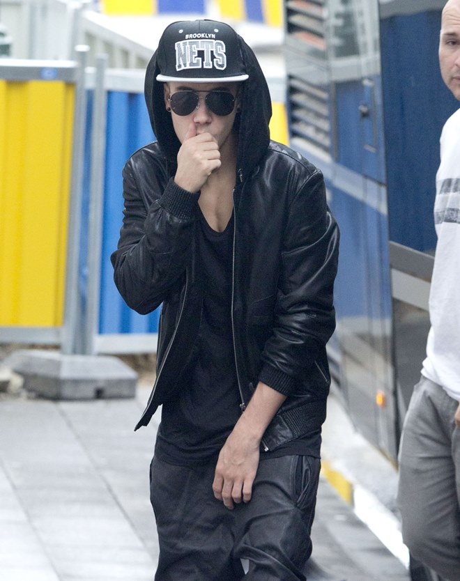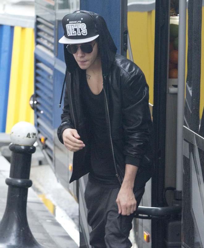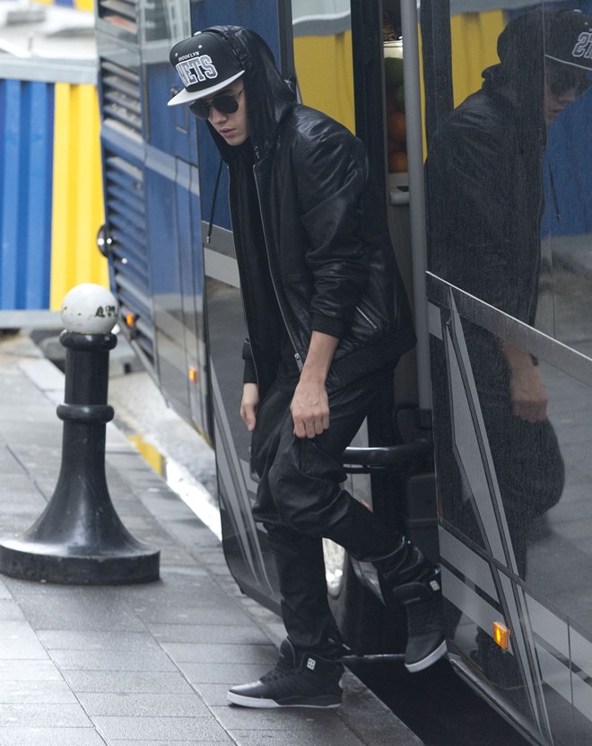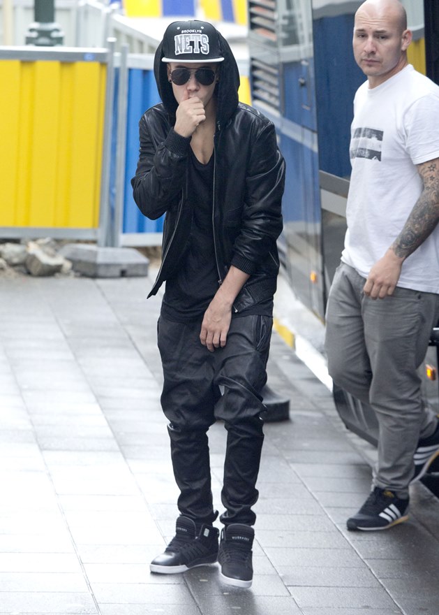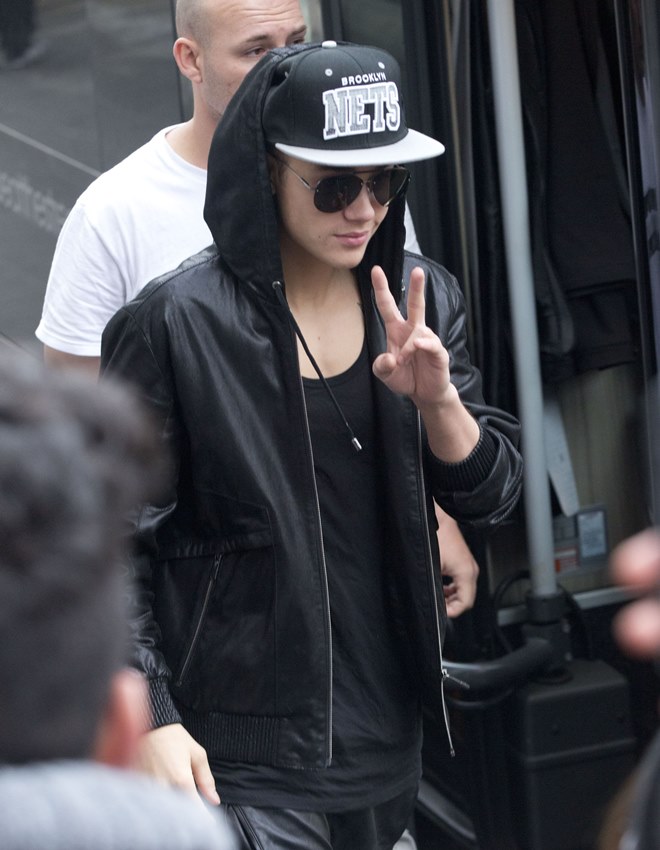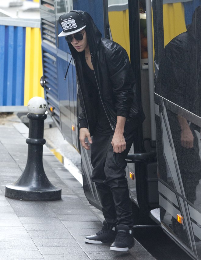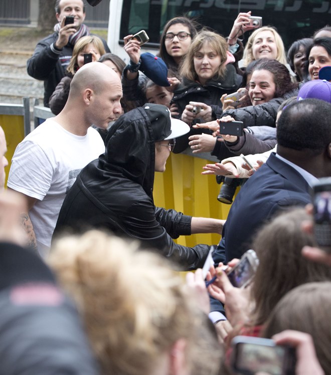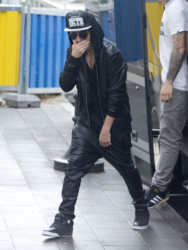 Here’s Bieber in Belgium yesterday greeting his fans and clearly not working on his posture.