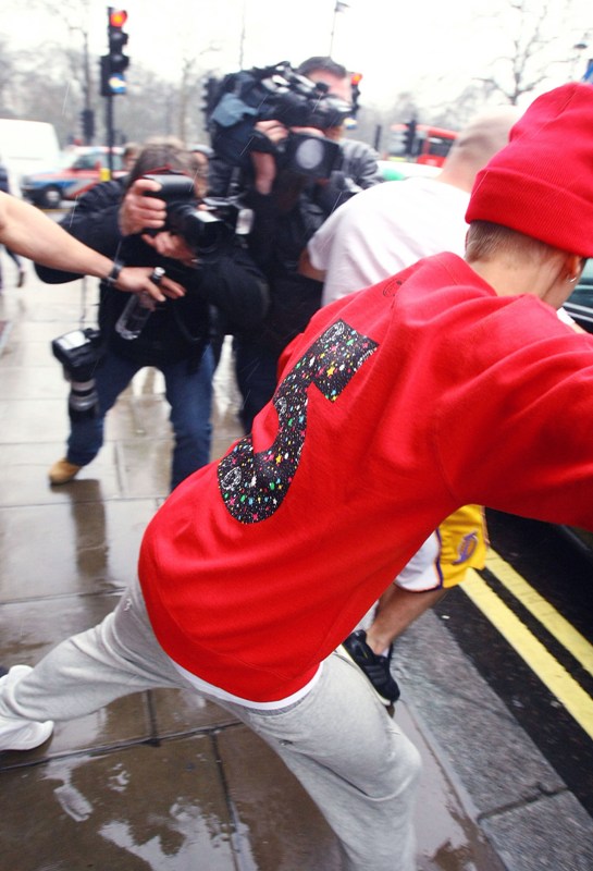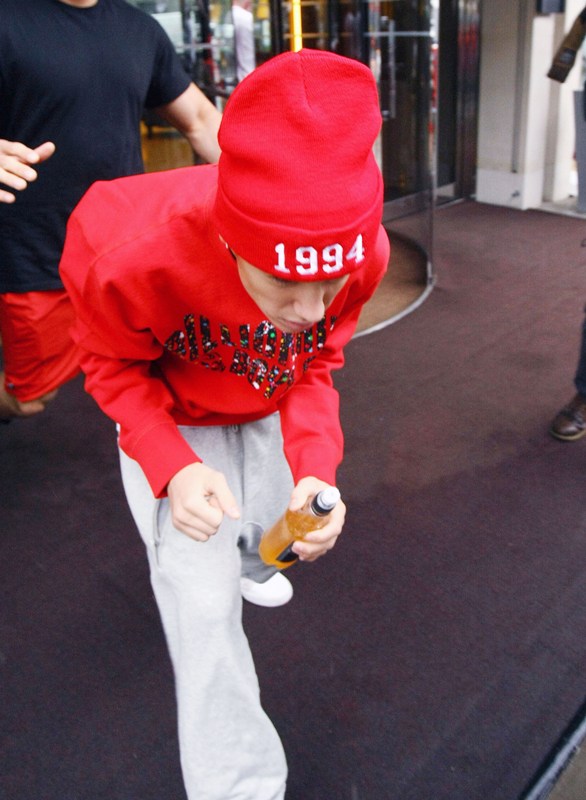 Our hero, Justin Bieber, God’s special gift, having spent part of last night under medical supervision, has been released, and was photographed outside his hotel this morning...