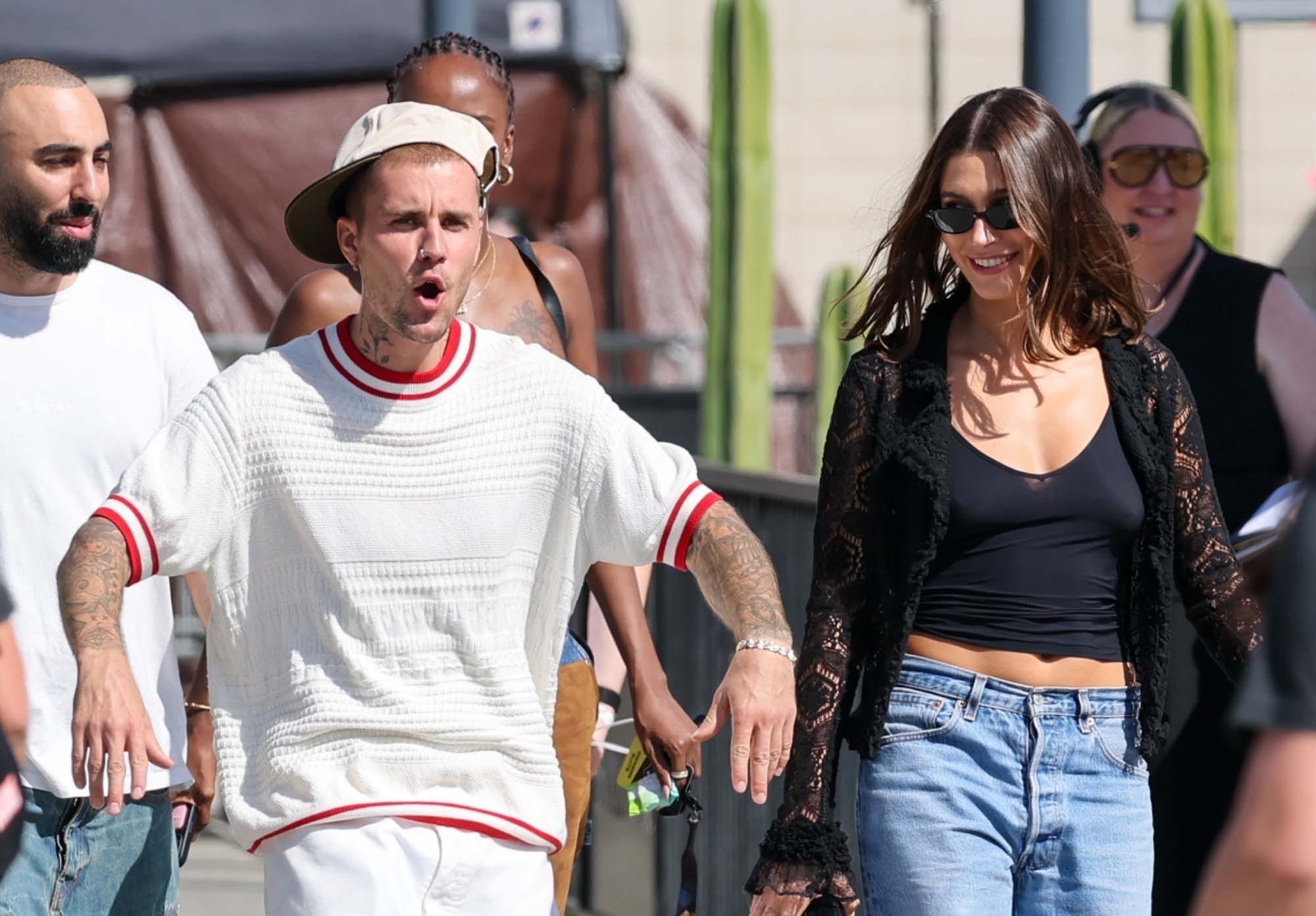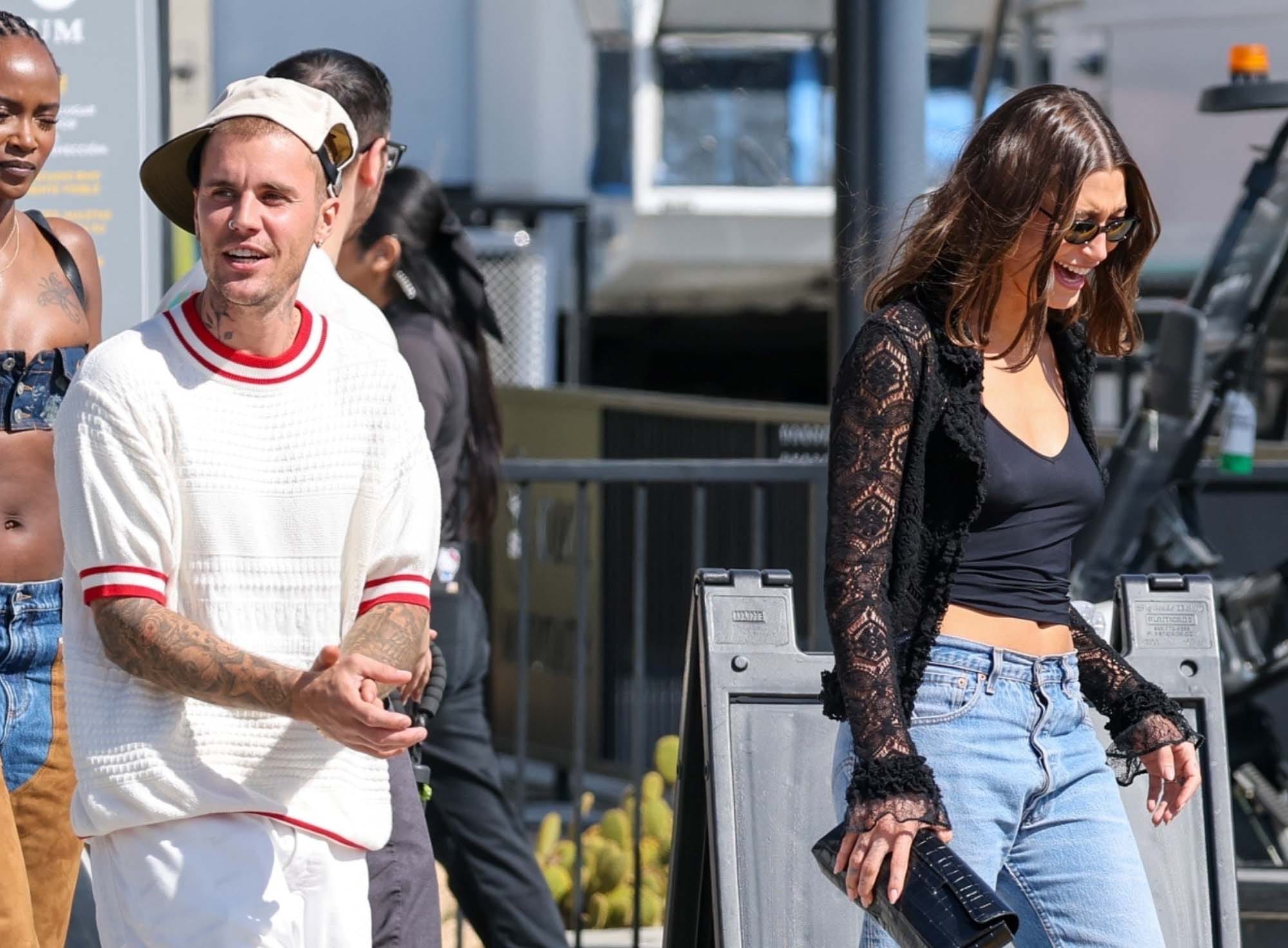 Justin and Hailey Bieber seen leaving the Fanatics Flag Football Classic in LA, March 21, 2026