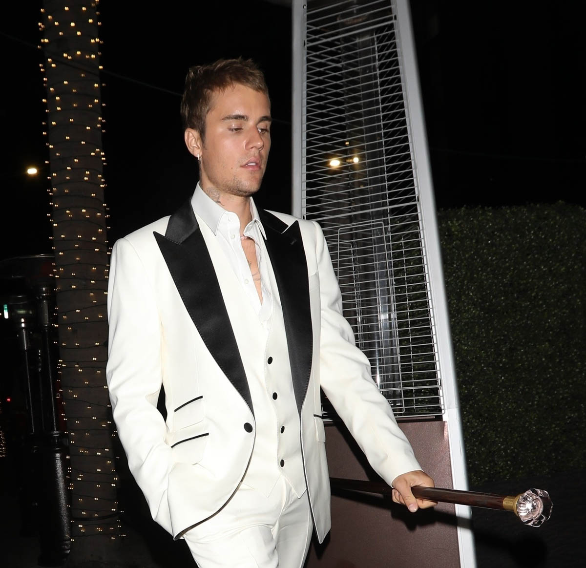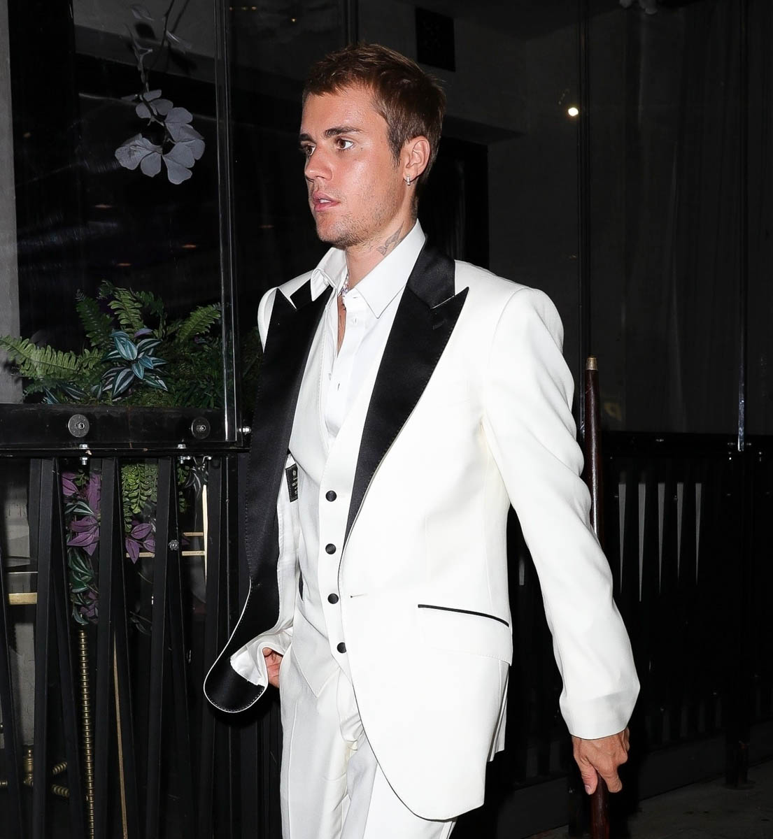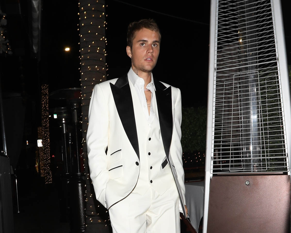 Speaking of celebrities dressing up, which I mentioned in the previous post about Thandiwe Newton and Nico Parker, Justin Bieber, who doesn’t often dress formally – in fact he dresses almost aggressively INformally – was out for dinner last night in a white suit with black lapels, and a cane. Drama!