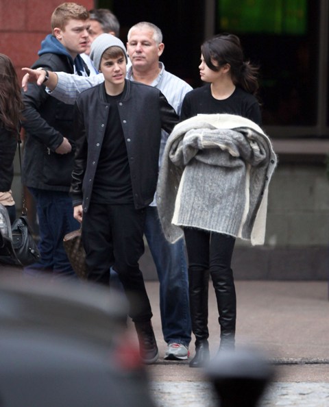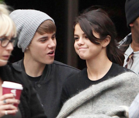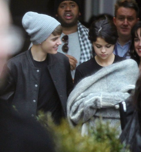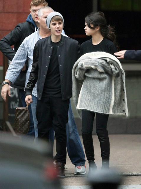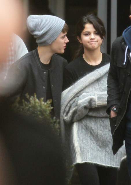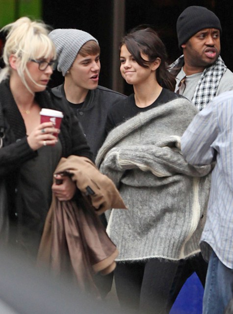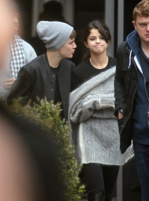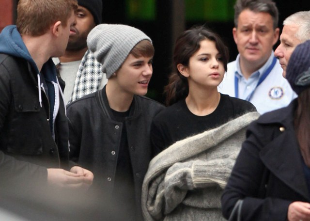Selena Gomez and Justin Bieber went to England together after the MTV EMAs the other night so he could turn on the Christmas lights at the Westfield Shopping Centre yesterday. Before that though, they were photographed touring a football facility where JB appeared to be trying to cheer up a pouty Selena with his bangs.