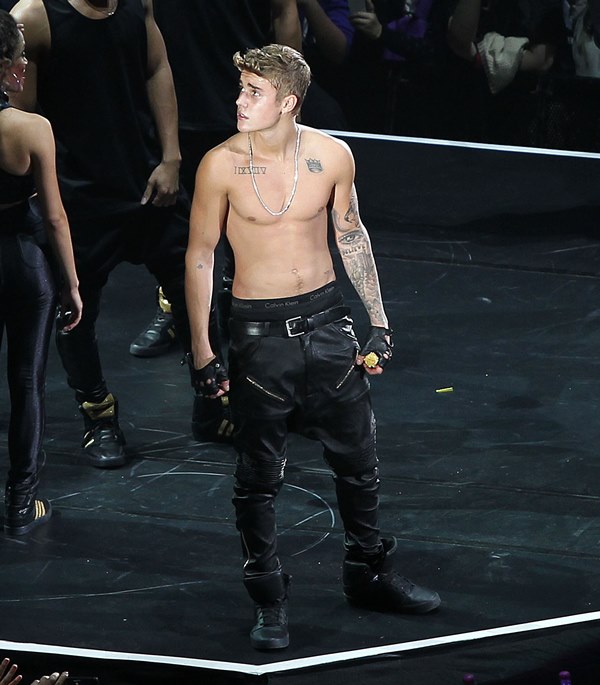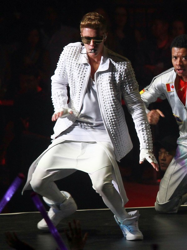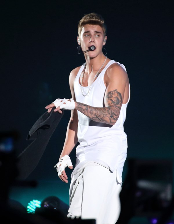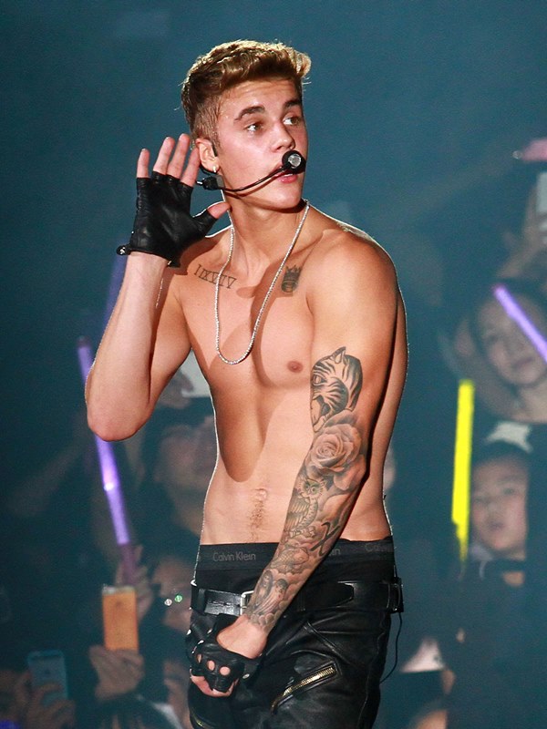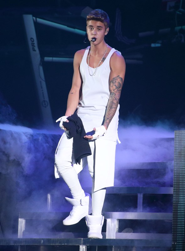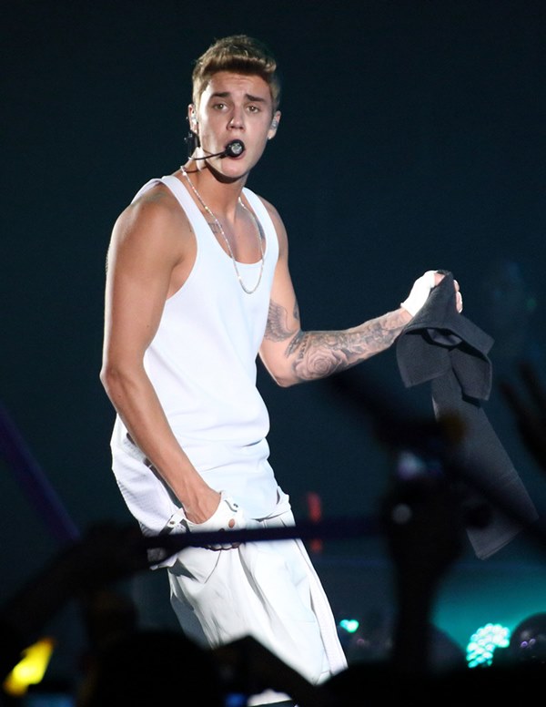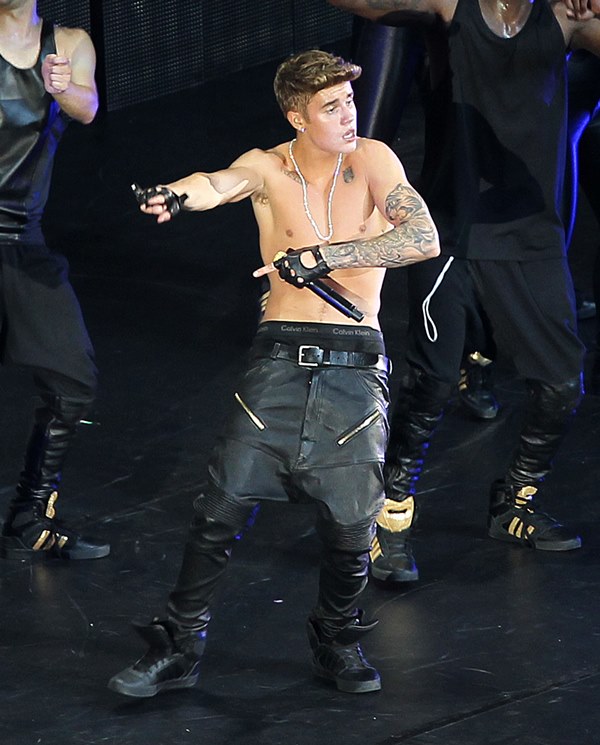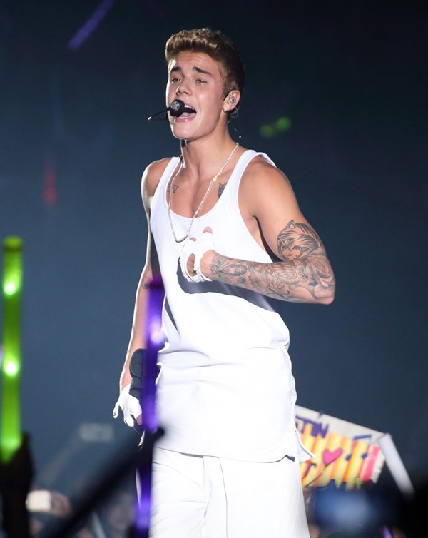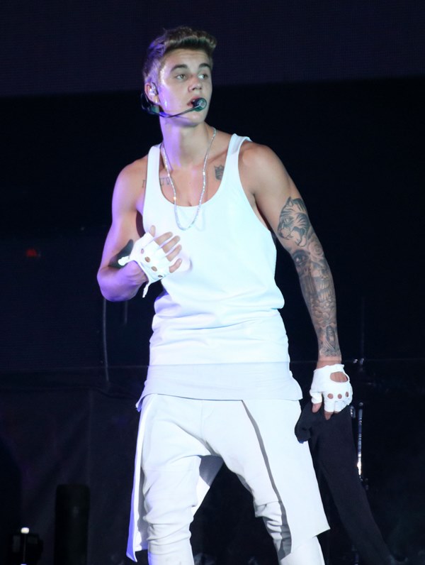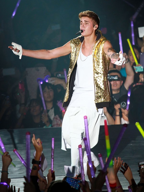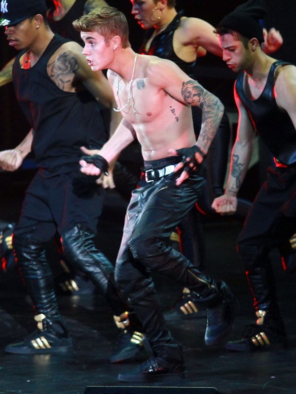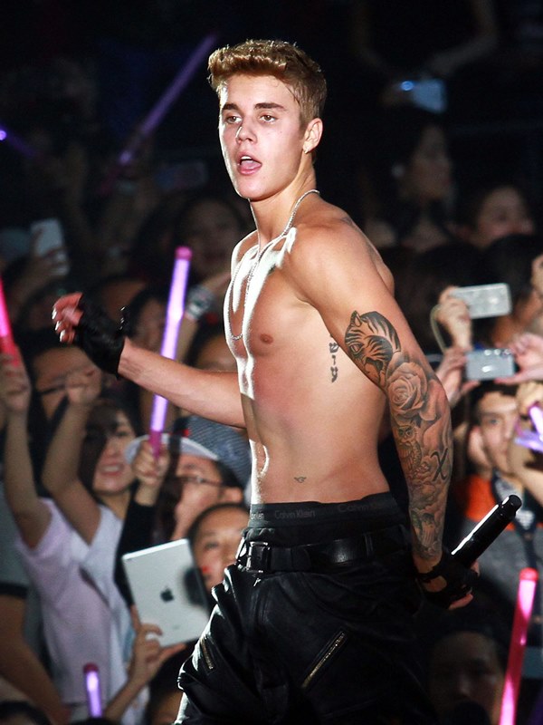 Here’s JB with his big boy muscles in concert in Shanghai on Saturday.