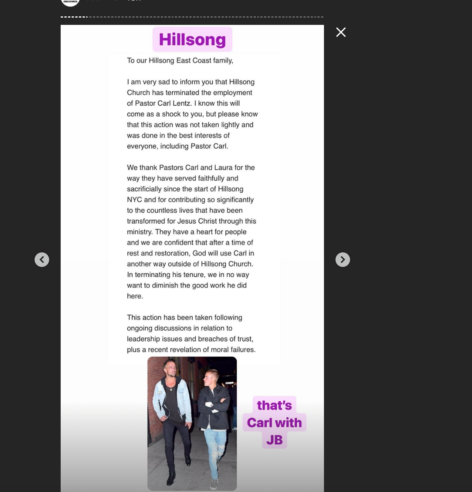 If we follow the DeuxMoi trail, we have a real buffet of offerings from anonymous submissions. Some say it’s the typical “moral lapses” (drugs and infidelity) that, frankly, are par for the course in religious scandals. Others say it’s bad but has nothing to do with infidelity; one person described it as “something that could happen to anyone” but wouldn’t elaborate. (Substance abuse? Tax stuff?) Still others said that Carl’s stance on social justice issues (he’s supportive of Black Lives Matter) have made him unpopular with the higher-ups at Hillsong. But, seeing as he’s a celebrity and bringing in big names (and, presumably, big donations), would they publicly fire him for him not falling in line?