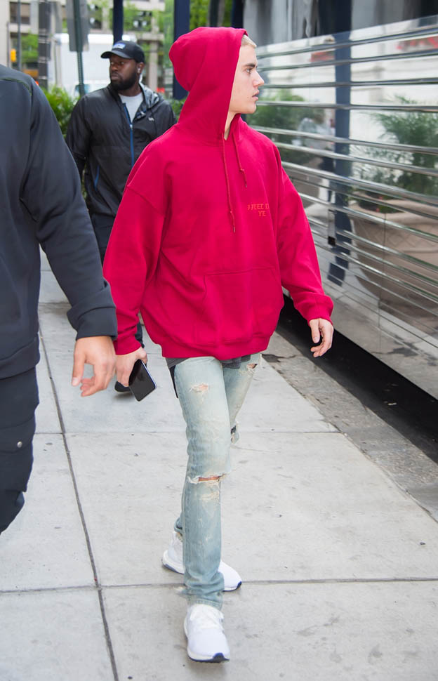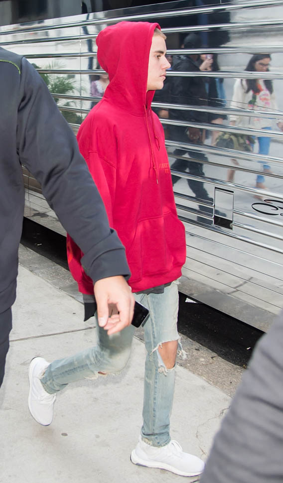 Attached - Bieber out in Philadelphia while on tour earlier this month.