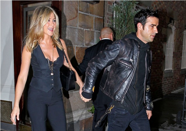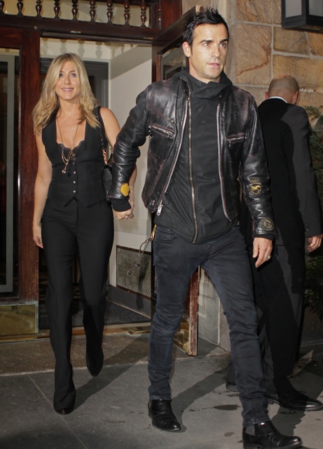 Jennifer Aniston attended the Lifetime screening of Five last night in New York. Her boyfriend Justin Theroux escorted her to the event. Am really enjoying tracking his hot progress. She’s making him hotter and hotter, right? Even though, as many of you keep noting, he won’t let her stand under his umbrella? When it rains more than ever, will they know they still have each other?