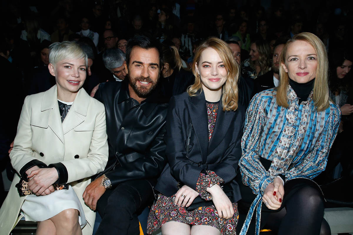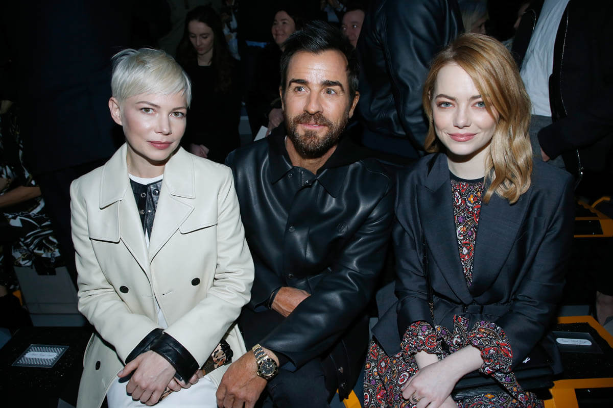 Jen is no longer his wife. But LV is still his paycheque. So “arty” and “edgy” New York Justin posted up between Michelle Williams and Emma Stone in the celebrity ambassador section. Right. Being a “celebrity ambassador” for a Paris fashion house, that’s totally “arty” and “edgy”, isn’t it?