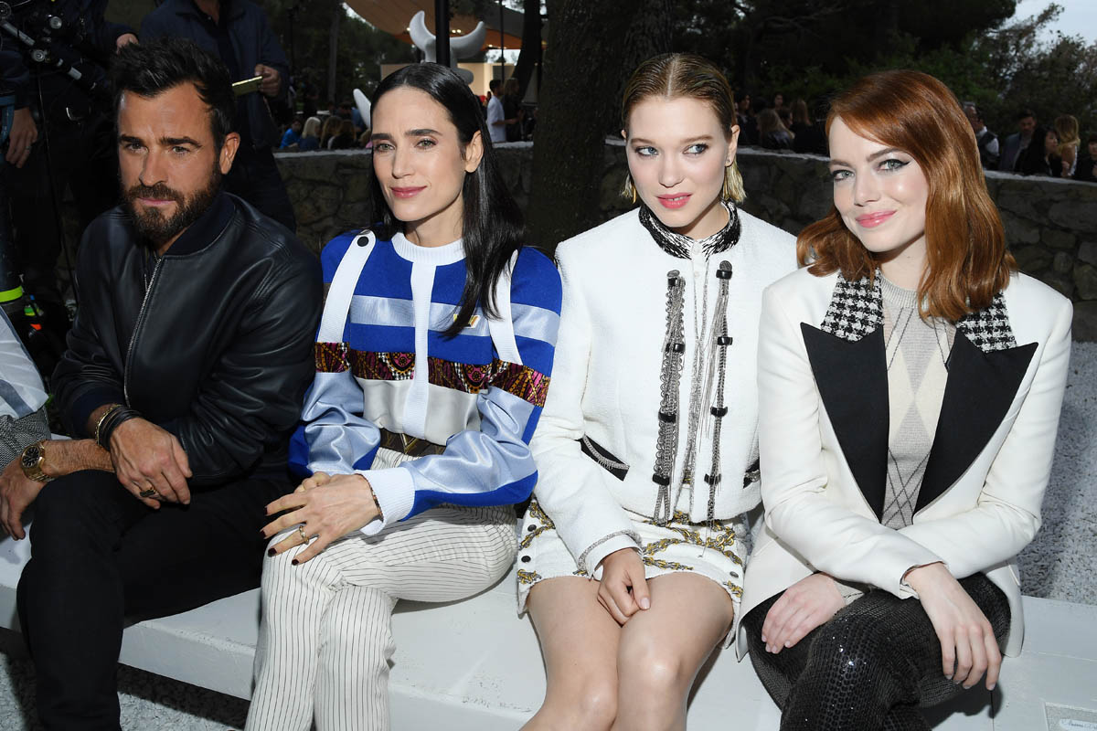 Justin Theroux, along with several other Louis Vuitton ambassadors, including Emma Stone, Jennifer Connelly, Lea Seydoux, Laura Harrier, and Sophie Turner, was in the south of France yesterday for LV’s Cruise Collection presentation. This is at least the second time Justin’s been in France for fashion business since he and Jennifer Aniston announced that they broke up.