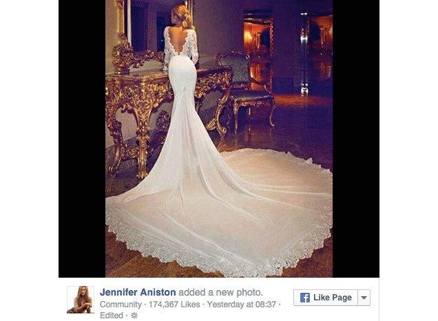 Anyway, over the weekend, someone posted some pictures of a dress on Facebook, suggesting that this is what Jennifer wore at her wedding:
