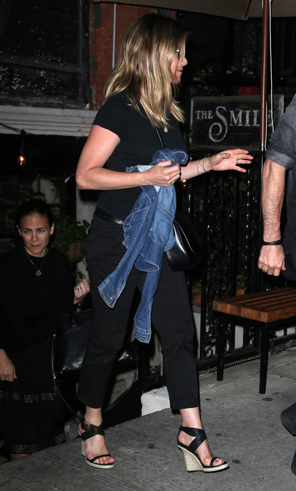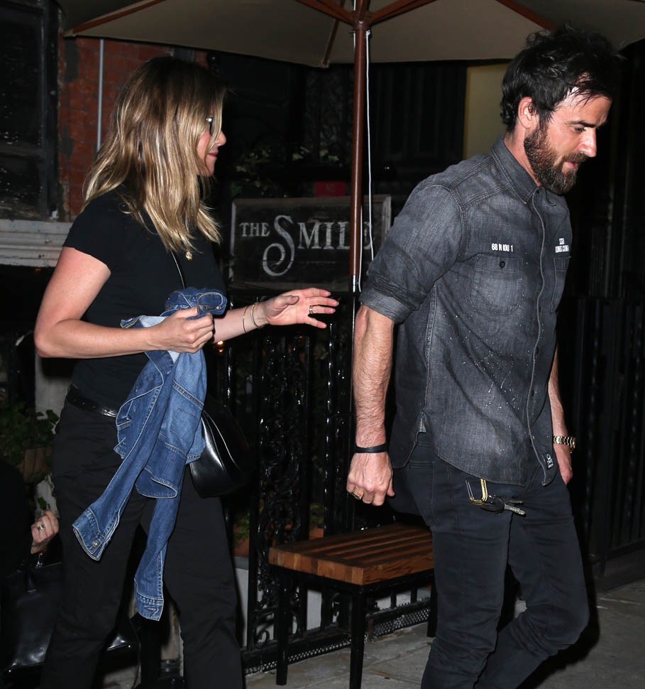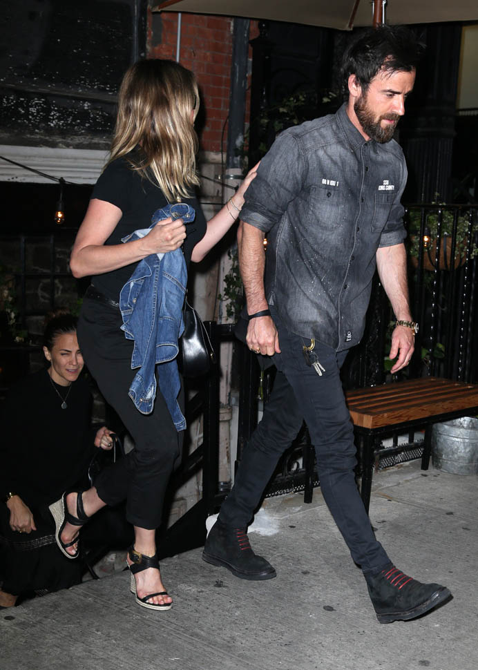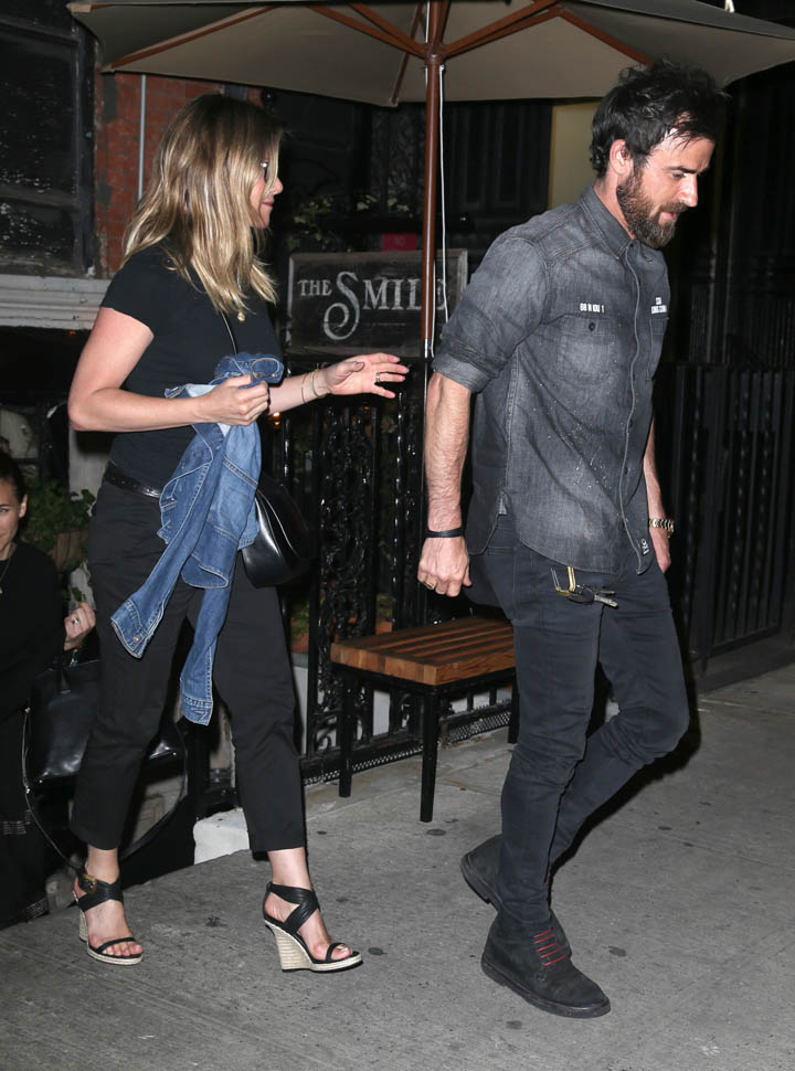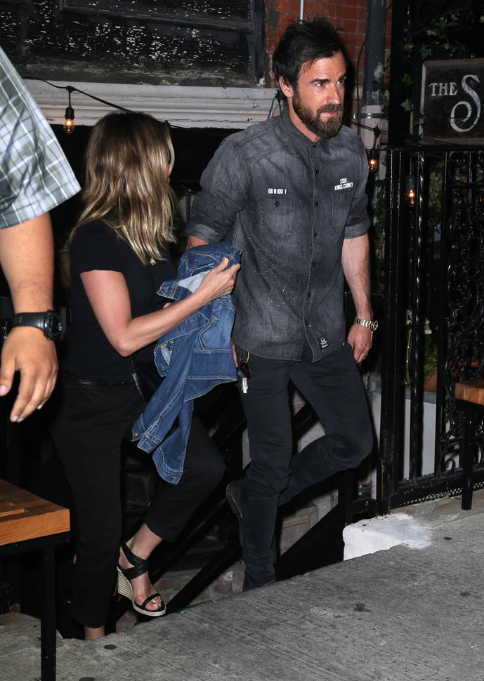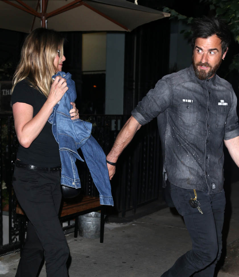 When I picture Justin Theroux, in my mind, his hair is always combed back. And he’s got quite a distinctive hairline. Last night he and Jennifer Aniston went out for dinner in New York. This is a different look. I dig it. And, ahem, it does more than just the job of making him look attractive.
