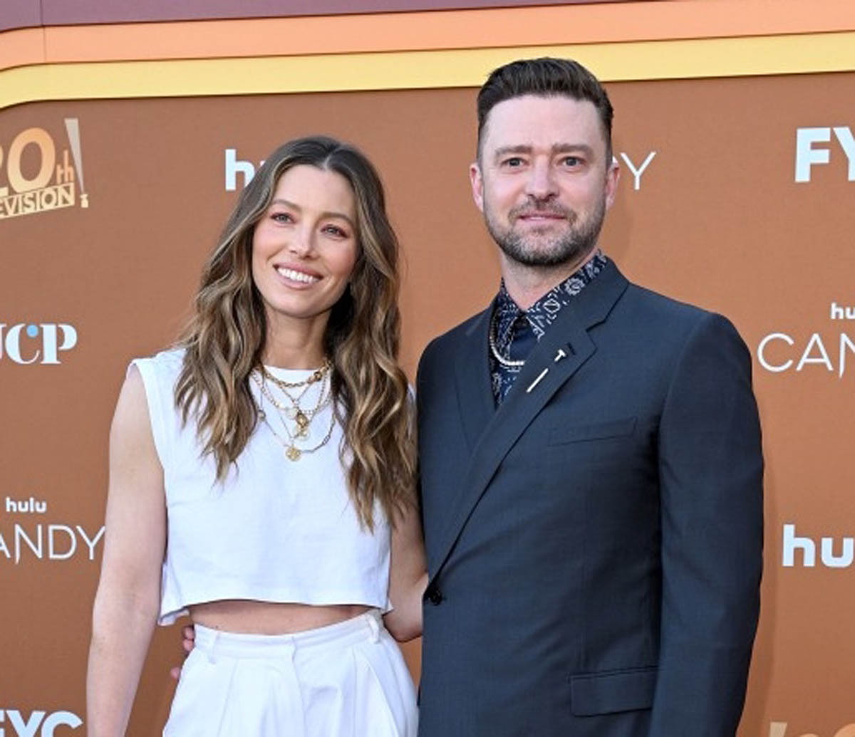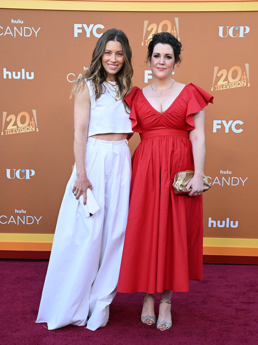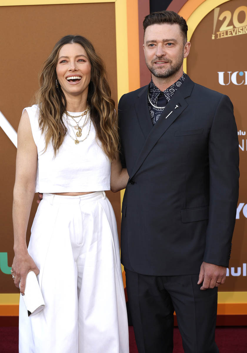 Jessica and Justin are now back in LA for the release of her new limited series Candy which premiered on Hulu yesterday. She’s been doing interviews to promote the show, including Jimmy Kimmel Live! last night and she and Justin also attended the premiere. I love this outfit on her – the oversized pants and the slightly cropped top accessorised by all those chains, it’s a fresh look. And, amazingly, he’s not obscuring it. By either jumping in front of her or behind her or spectacle-ising himself in any way. But since we’re talking about that, let me just bring back the classic: