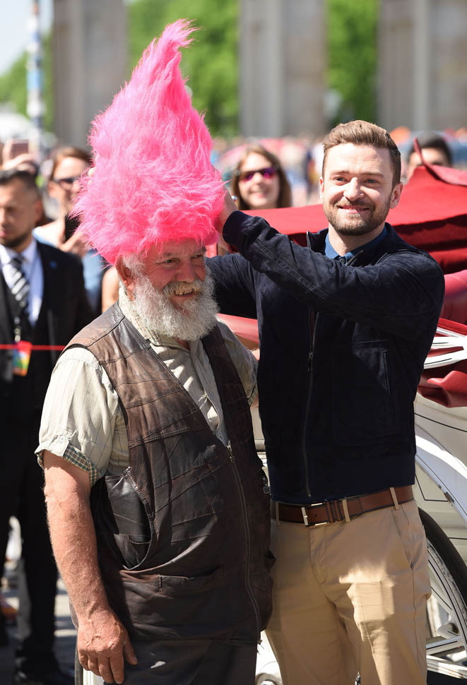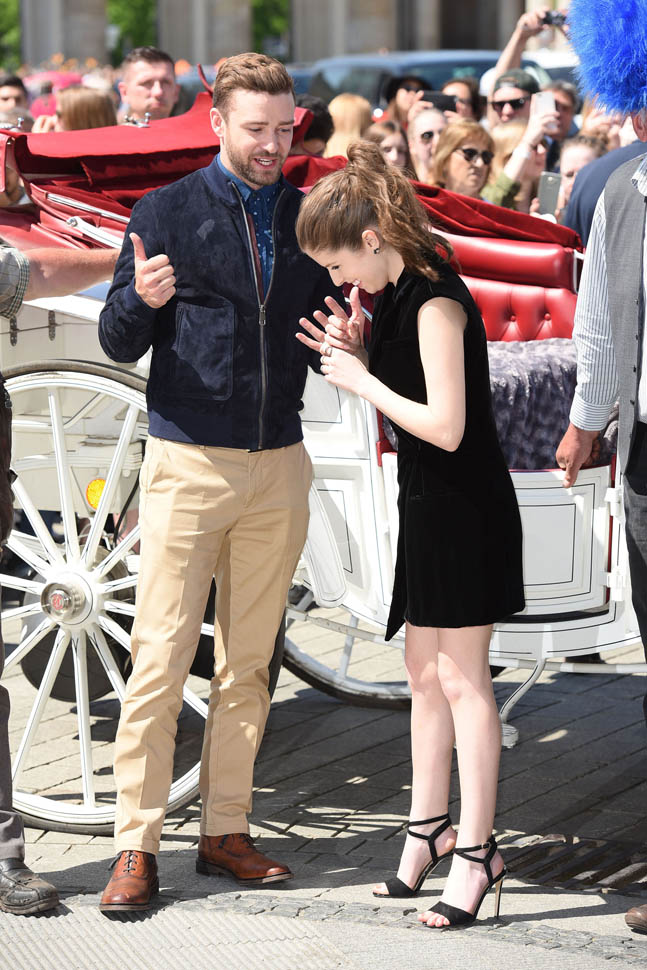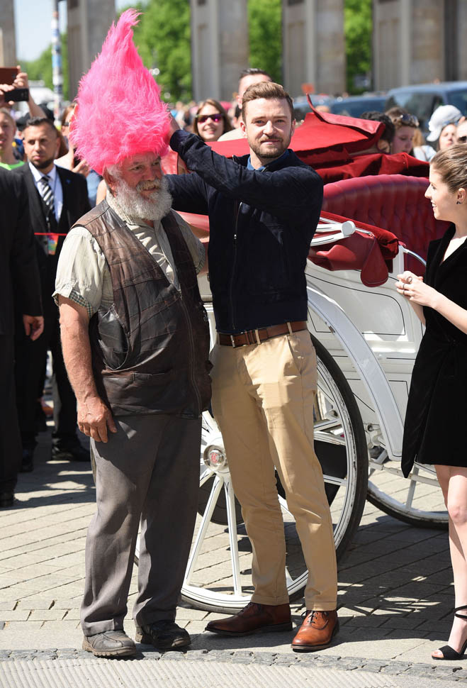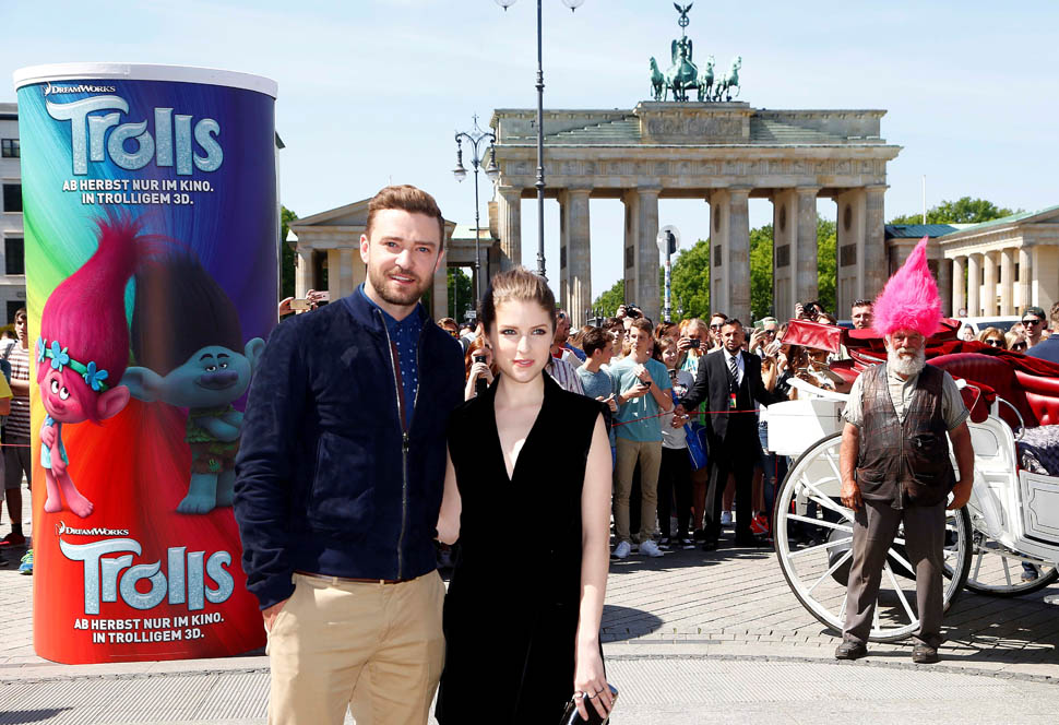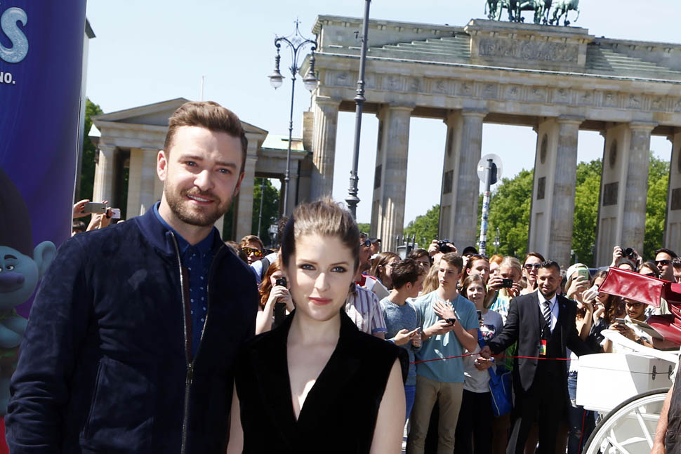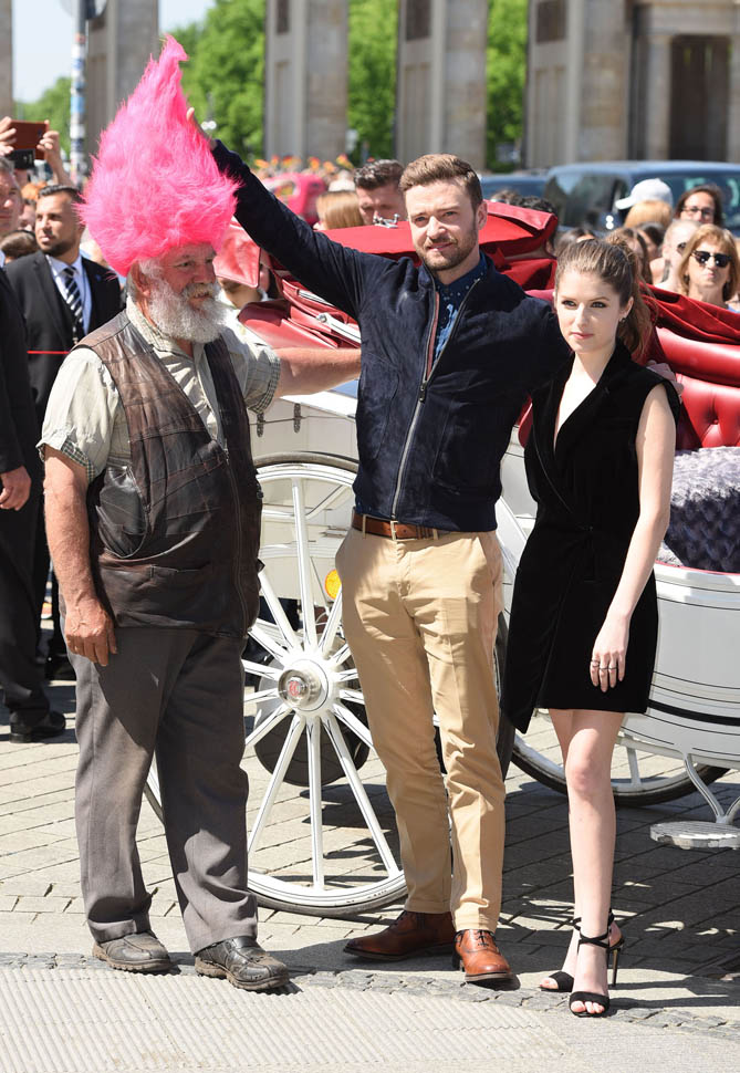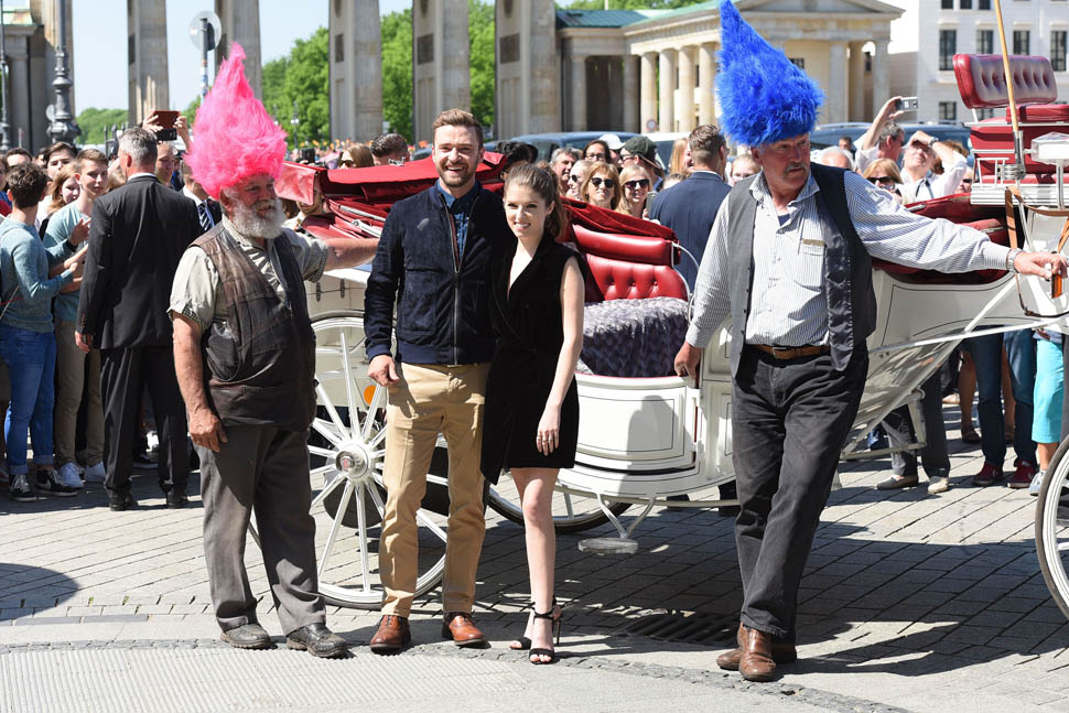 Justin Timberlake and Anna Kendrick are in Berlin today for Trolls. As I mentioned yesterday, the movie doesn’t come out until November so I didn’t understand why we were being told to care about it now. But then I realised they’re on their way to Cannes. And they’re splashing out a big presentation for the movie there. And also, according to Roger Friedman there’s also the fact that Dreamworks was just bought by Comcast. So, really, it’s not for the audience, it’s for the money. And so they’ve timed the release of JT’s song, Can’t Stop The Feeling, as part of the hype.