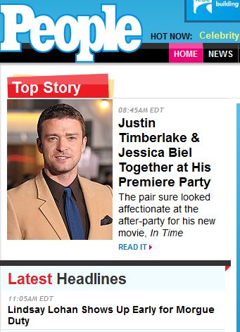 So was Jessica Biel around? She was but he didn’t want her to walk the carpet. They met up at the after-party instead - no photos - which is why PEOPLE.com got the call with all the details about how “intimate” and “loving” the two seemed together and kissed in front of everyone...and this conveniently made the “top story” headline on the site this morning.