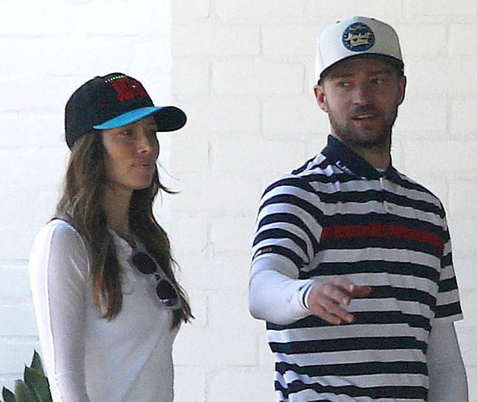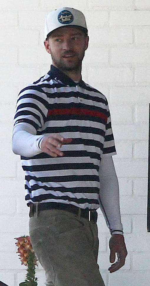 Justin Timberlake has a month off from touring. His wife joined him for a large part of his travels overseas but they were not photographed together often. Now, though, they're back home in California and decided to go golfing this weekend. Paps hang out at golf courses?