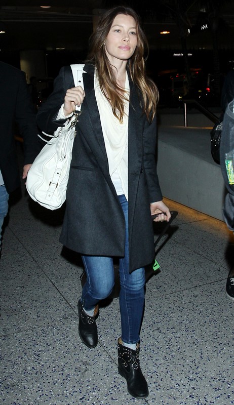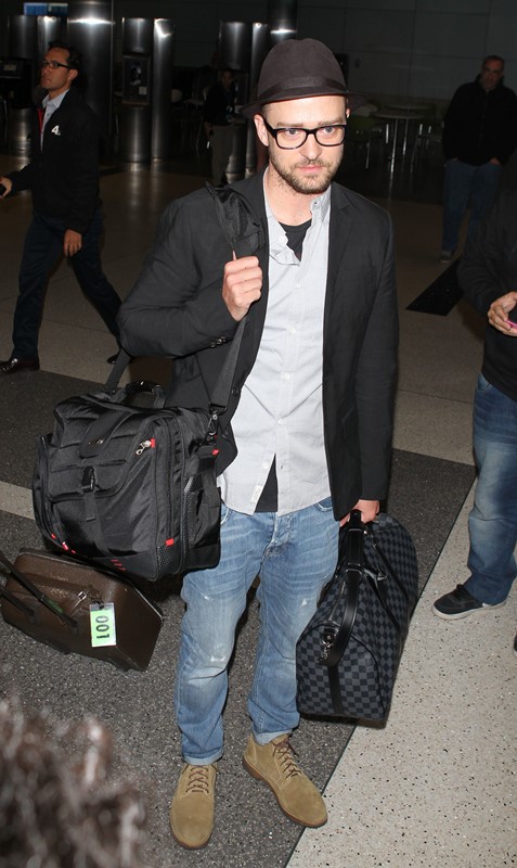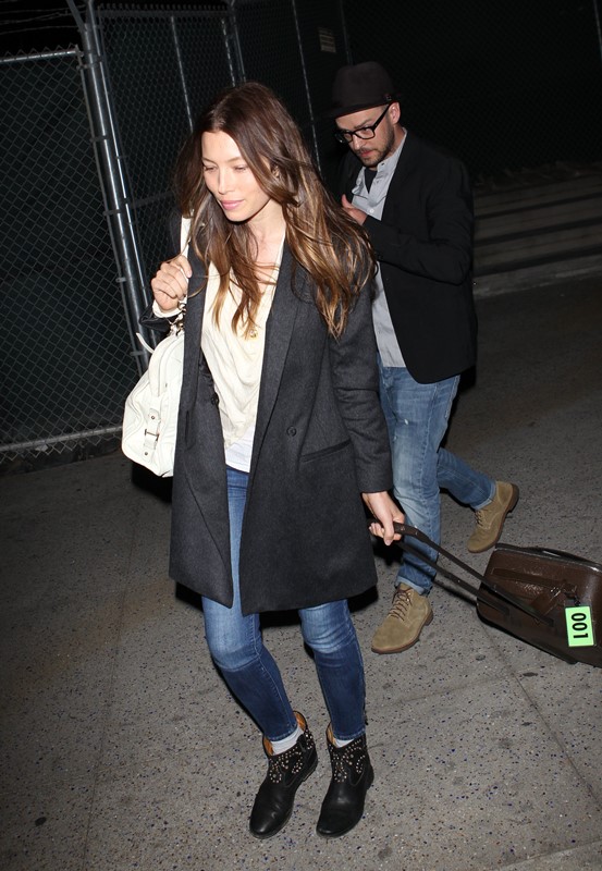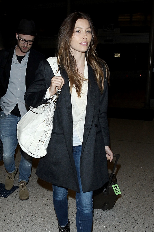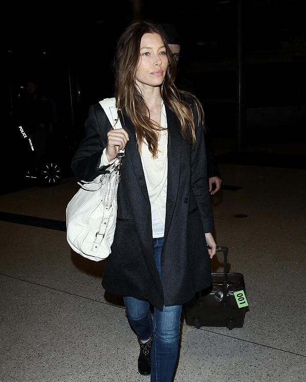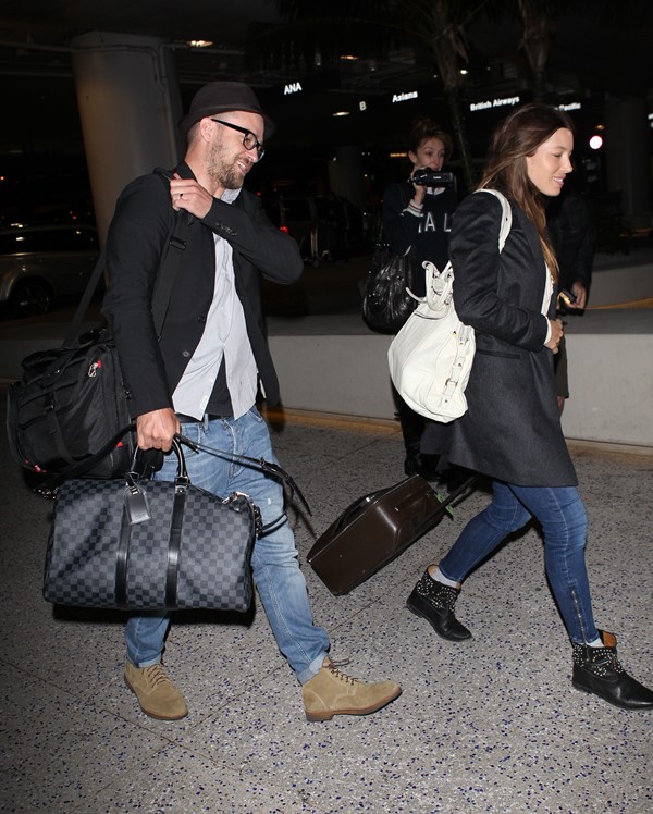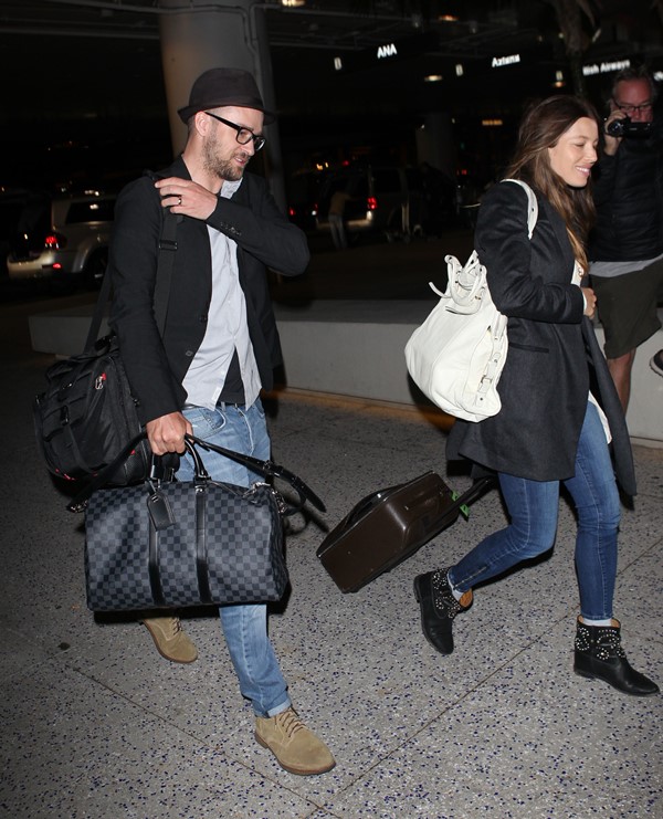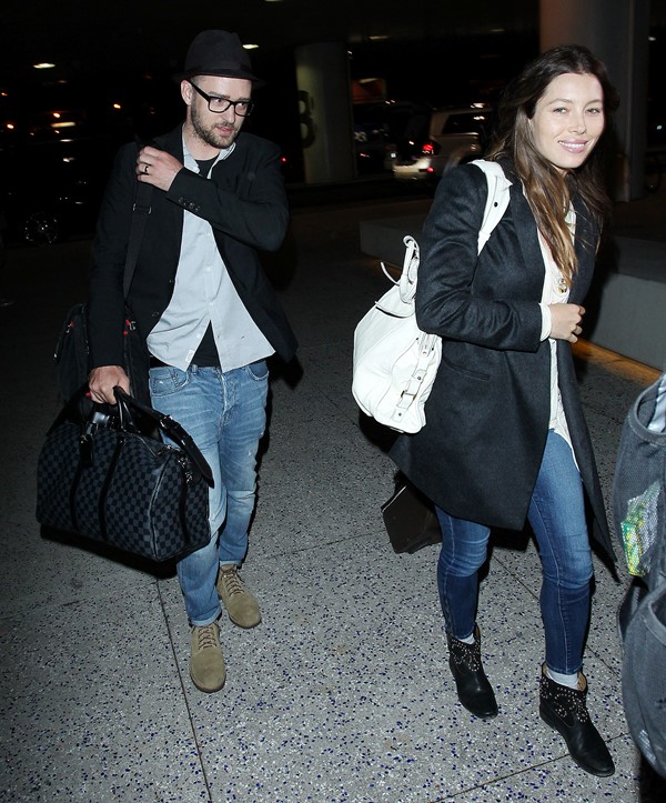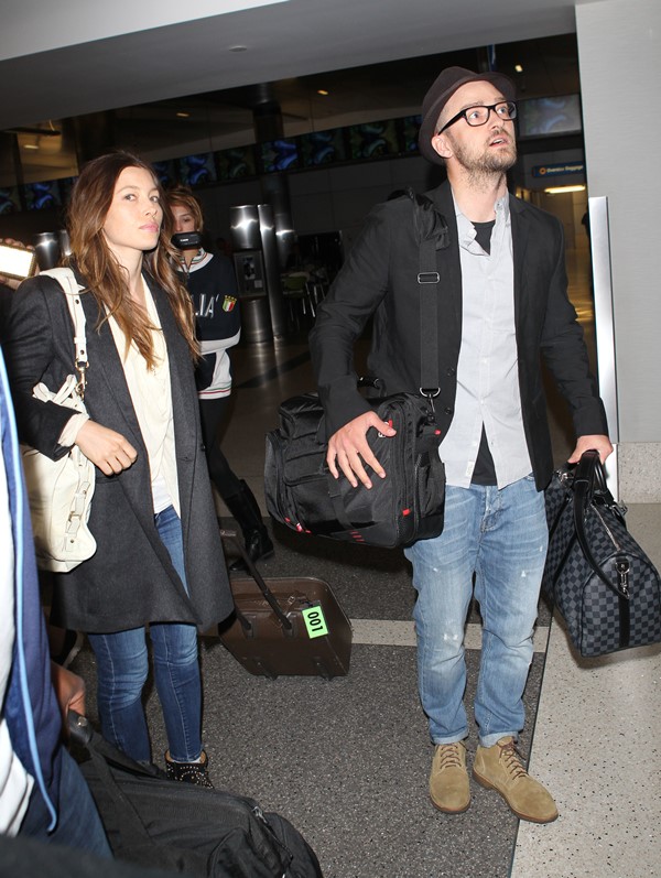 Justin Timberlake and his wife were in Barbados last week. You can see those pictures here. Last night they were photographed at LAX en route to London. JT resumes his tour in the UK on Sunday. Mrs T has no projects lined up – that we know of – so she has time to join him on the trip.
