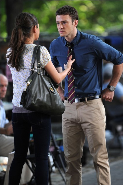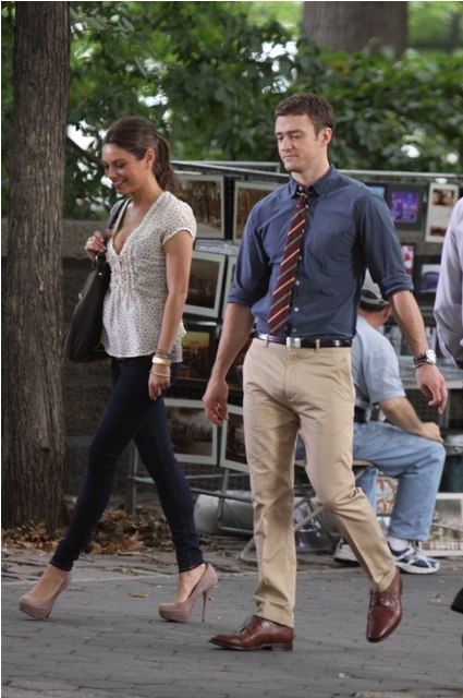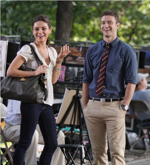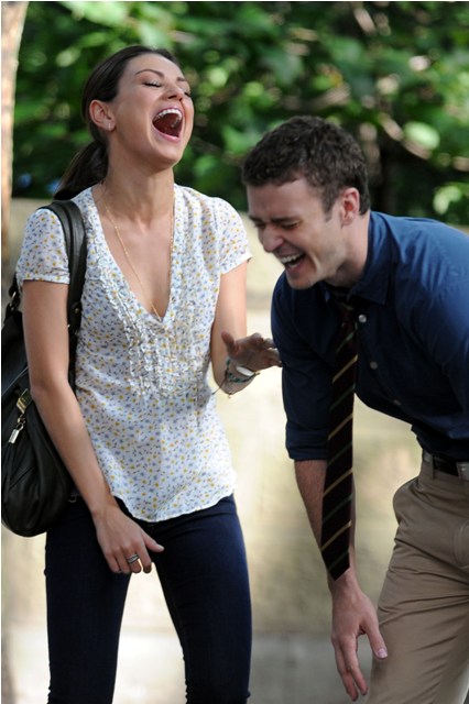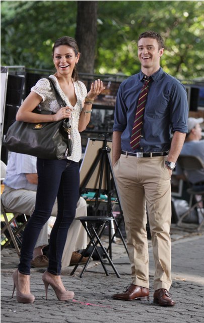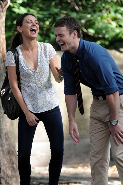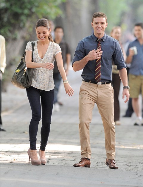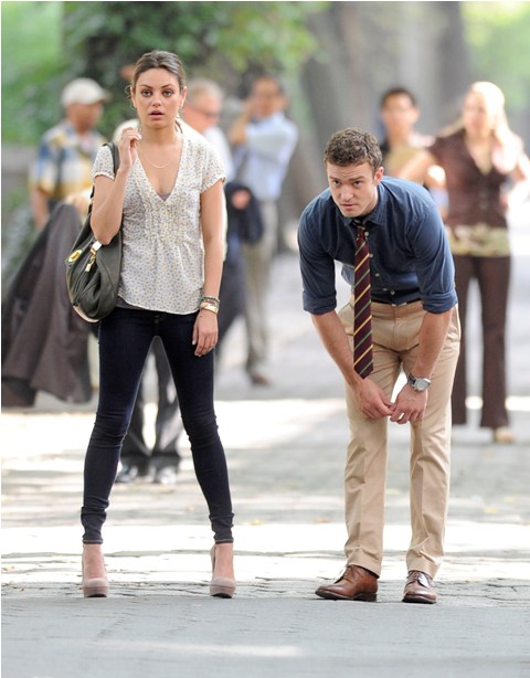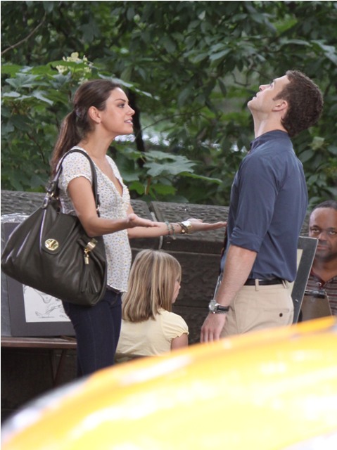 So here he is with Mila Kunis on the New York set of Friends With Benefits this morning and his Try, just looking at the pictures, his Try is so hard. They way he’s throwing his head back in “exasperation”, lifting his hands up as he pleads, the attempt at laughter, you’re wincing right? I’m wincing too.