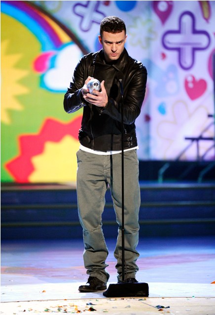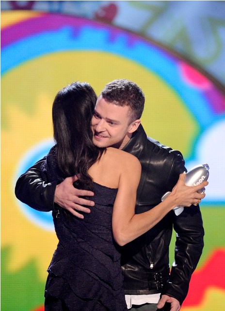 Also attached – Justin receiving the Big Help Award on Saturday night at Kids’ Choice, right before he and Olivia hooked up. She’s just out of a marriage, he’s just been released from a clinger, right now then let’s not see it as any more than that. Two attractive celebrities…f-cking.