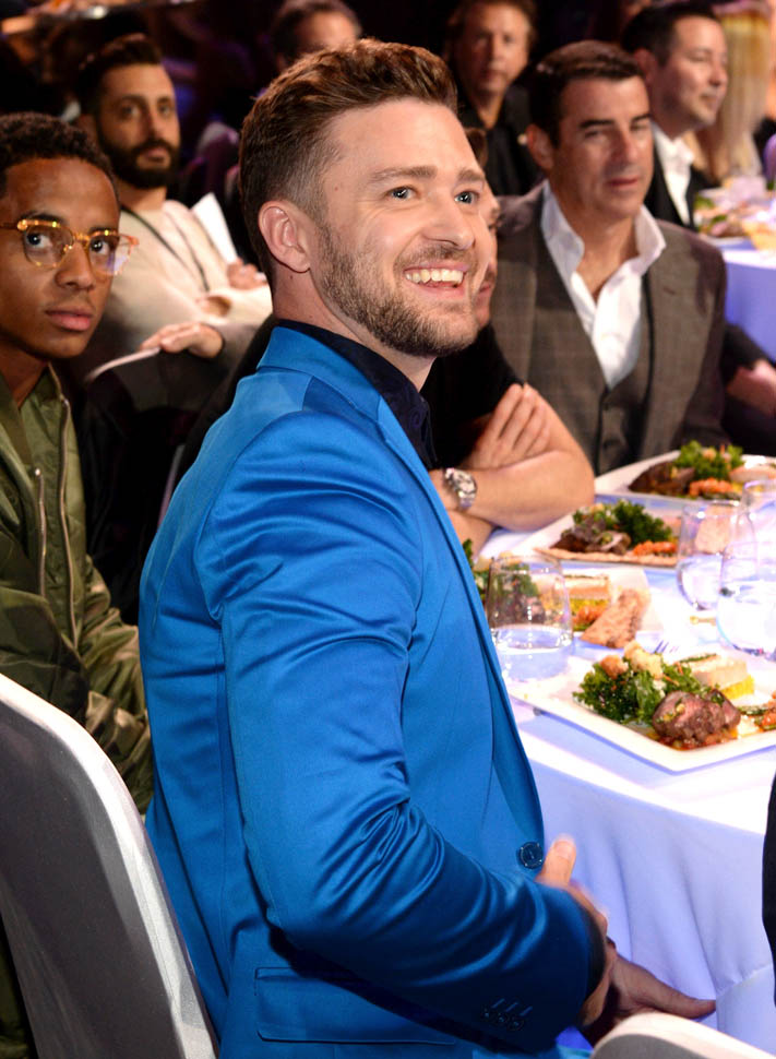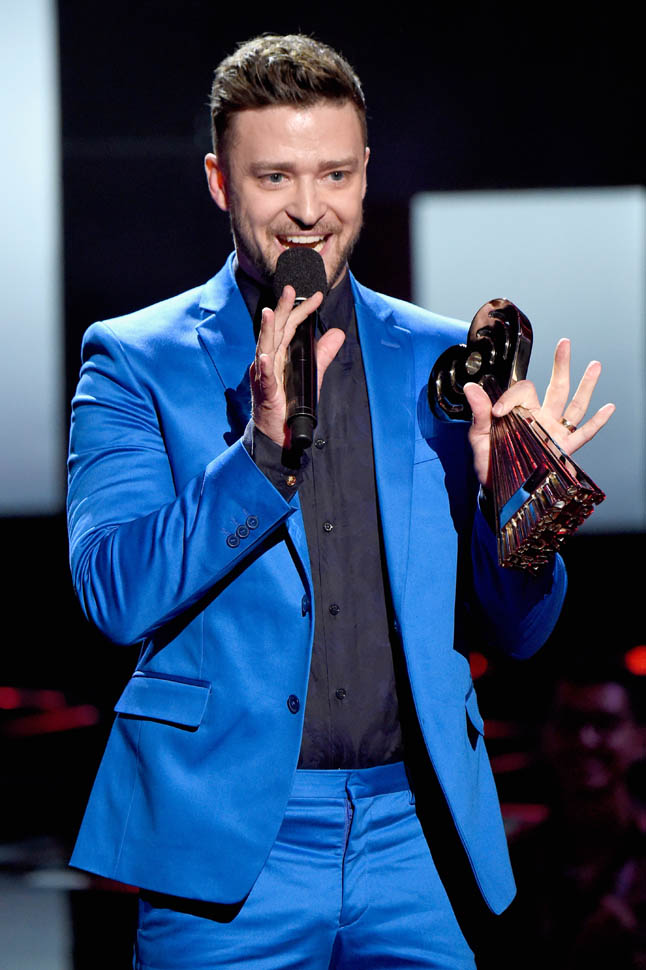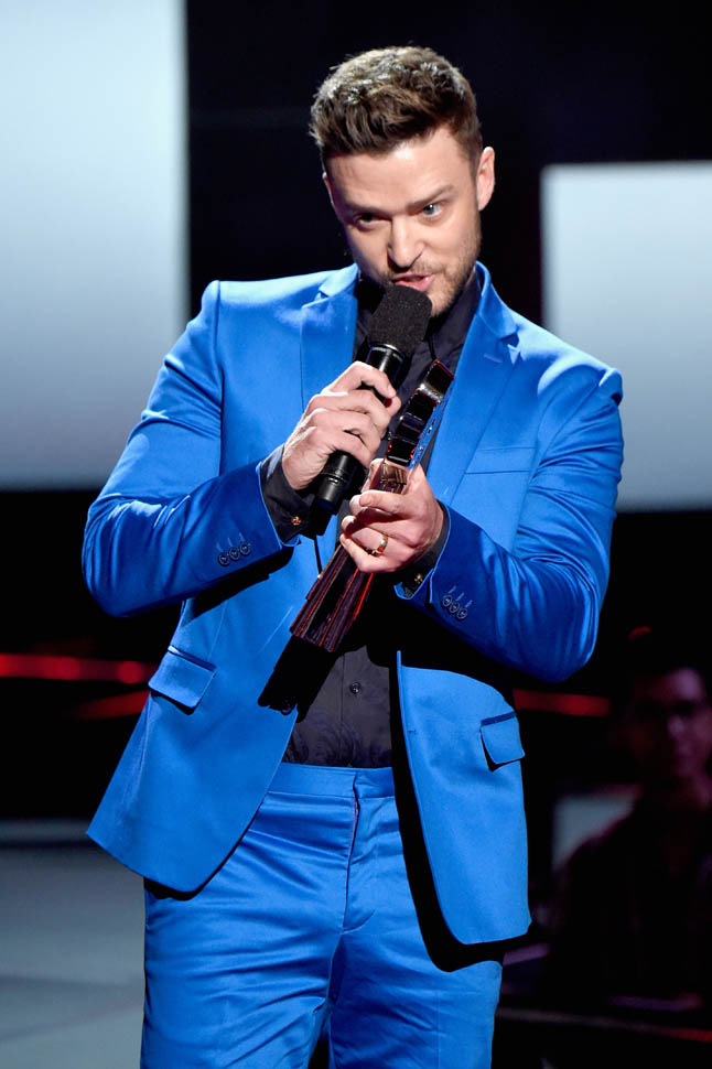 But again, we’ll all take Justin Timberlake, singer-songwriter, performer, over Justin Timberlake all-the-other-things. He belongs on this stage. So, after a display of false modesty, Justin took over the stage to lecture and inspire. One day after Angelina Jolie talked at the Kids’ Choice Awards about being “weird and different”, JT used the same words to encourage young people out there to embrace their uniqueness in spite of the critics. Then he quoted Steve Jobs and Theodore Roosevelt. And then he publicly thanked his wife, who is pregnant with their “greatest creation”. And then, in true JT trademark style, he segued from acknowledging his wife and their unborn child to what that means FOR HIM. Naturally. Learning how to change diapers and swaddle.