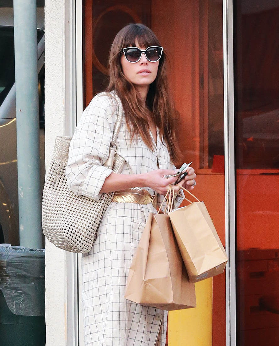 Jessica was not there, or at least she wasn’t photographed, although earlier in the day she was seen at her restaurant, Au Fudge wearing a pretty gold leaf belt.