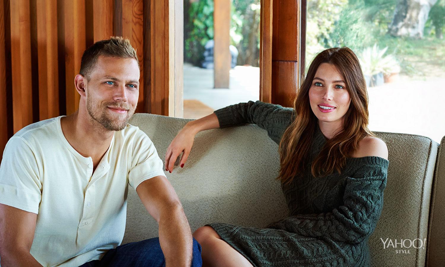 Meanwhile, Mrs Timberlake is posing for Yahoo! Style in support of her hot brother and his hot friend and their fashion burlap coffee sacks. She put up her own money for them to produce a limited run of them. That green sweater dress looks really good on her.