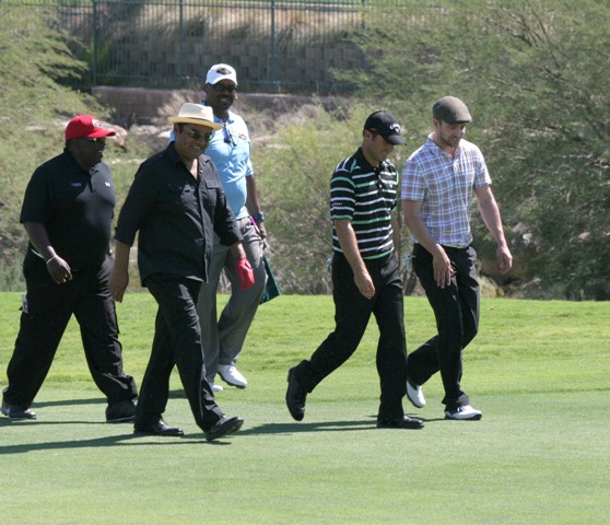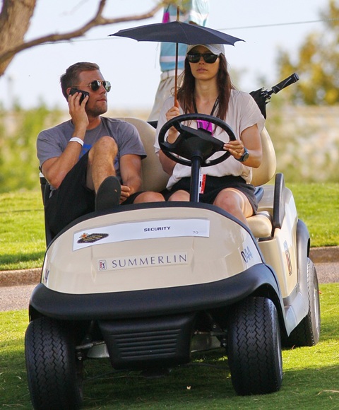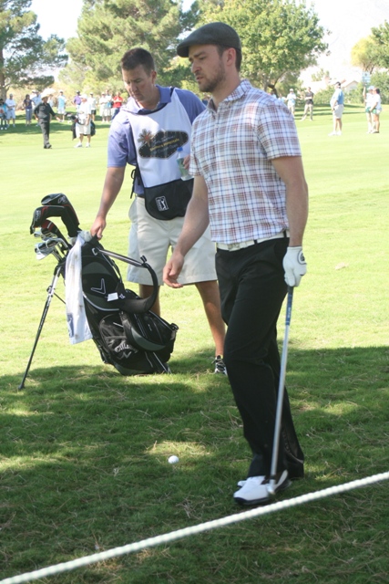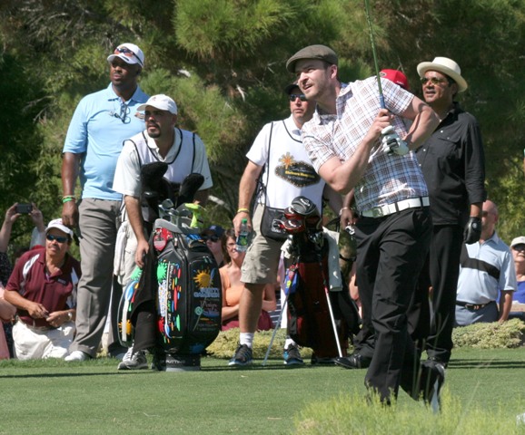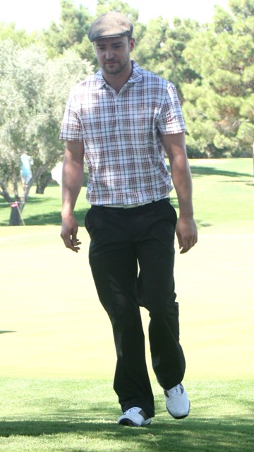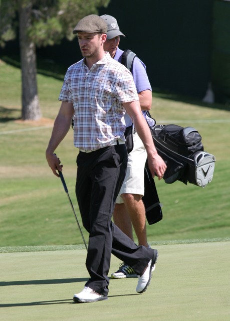 The Justin Timberlake Shriners Hospitals for Children Open Championship is happening this week in Vegas. JT played in the pro-am yesterday with some other celebrities. Jessica Biel followed him around in a golf cart. See photos below.
