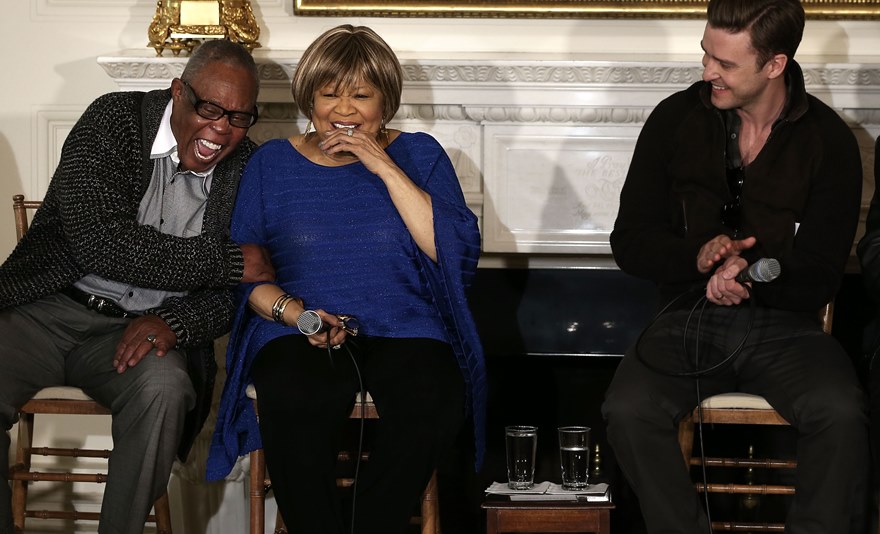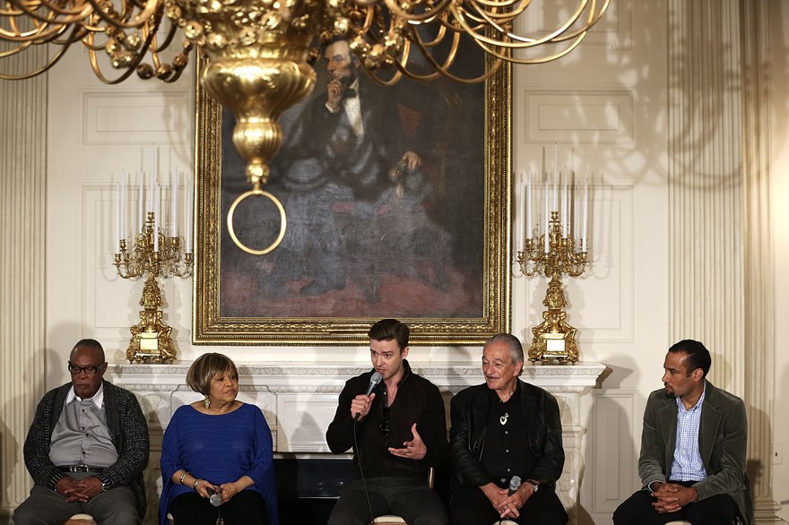 Justin Timberlake was invited to the White House yesterday to participate in a workshop hosted by First Lady Michelle Obama on Soulsville, USA: The History of Memphis Soul alongside legends Sam Moore, Mavis Staples, and Charlie Musselwhite. The Photo Assumption in some of these pictures cracks me up. Look, in particular, at Moore and Staples, their expressions when Pipsqueak is speaking. To be fair though, they did include him in some camaraderie later, and it would have been dishonest of me not to include those images too. It’s just the other ones, if taken on their own, are so funny. Which is why Photo Assumption is such a great, if unreliable, game.