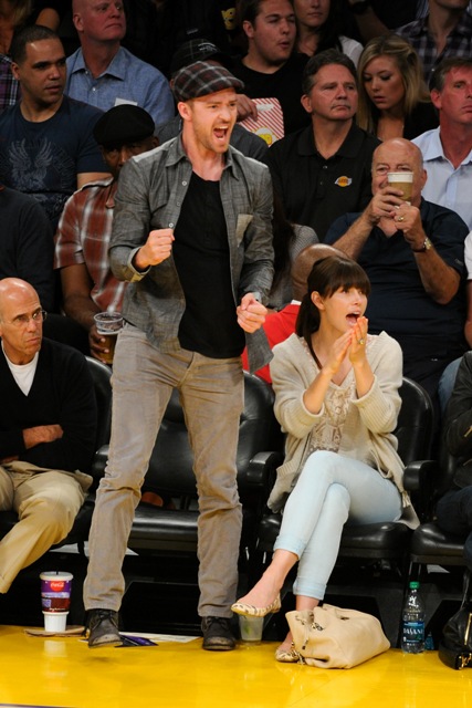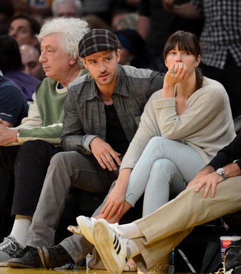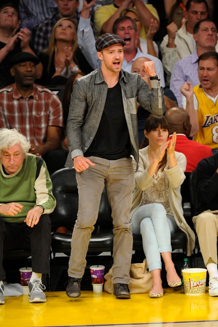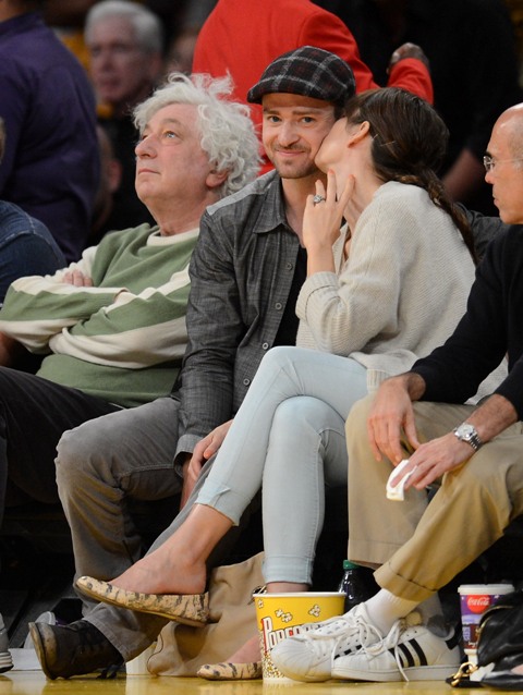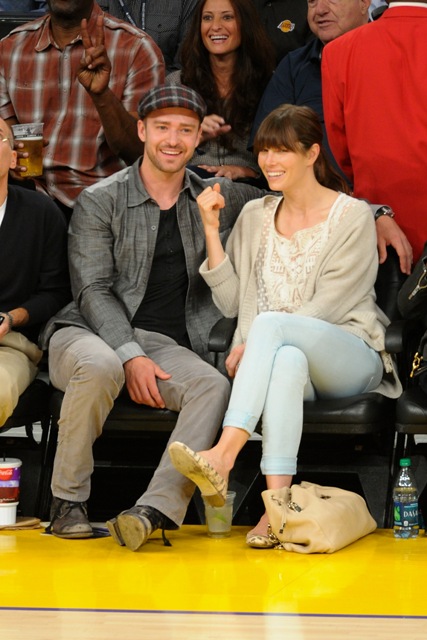 Justin Timberlake let his fiancée come with him to watch the Lakers defeat the Nuggets in Game 7 on Saturday. And not only that, he decided to be extra extra nice and let the world see how much she loves him. There was a lot of kissing and smiling and ring-pimping. She was floating, can’t you tell?