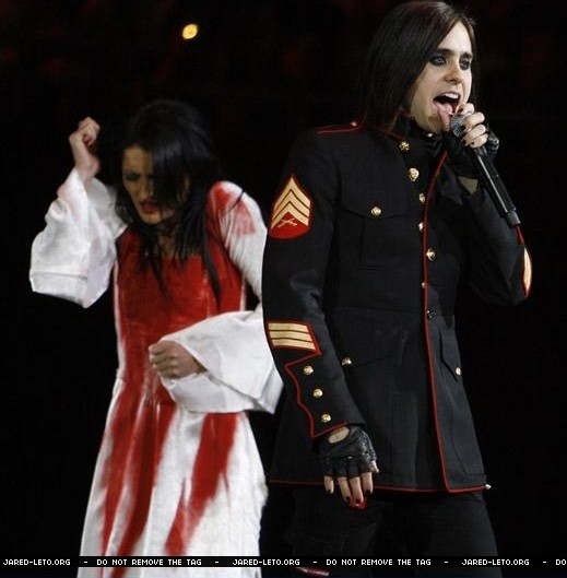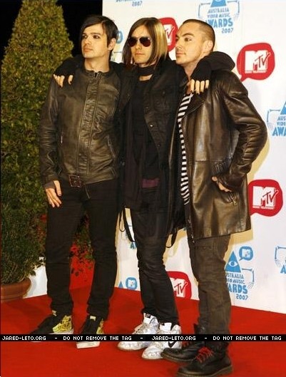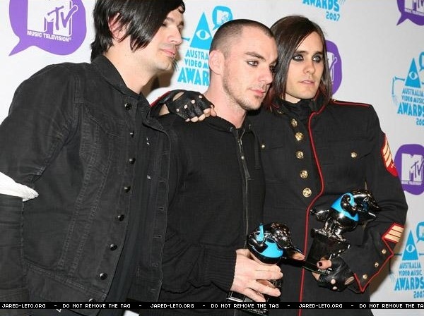 Here’s Jared and his band, 30 Seconds to Mars at the MTV Australia awards on Sunday. As you can see, he fancies himself a true recording artist now, and even took home an award??? Which is why he looks all pretty and smug and bothered to show up at all.