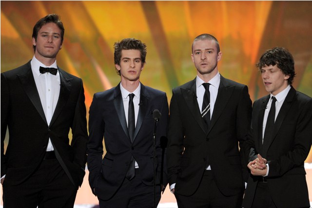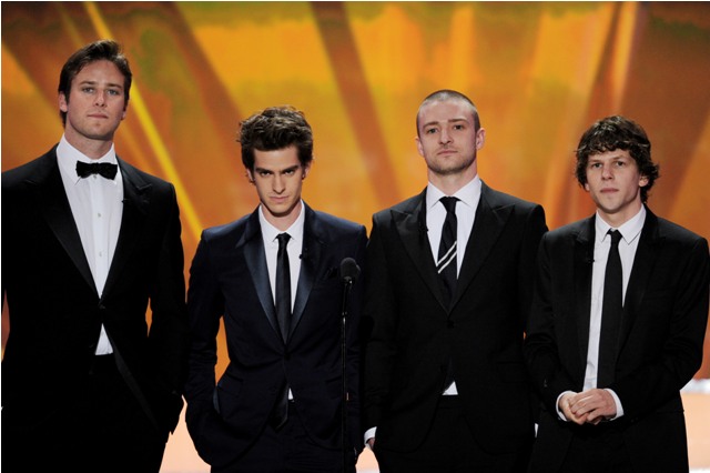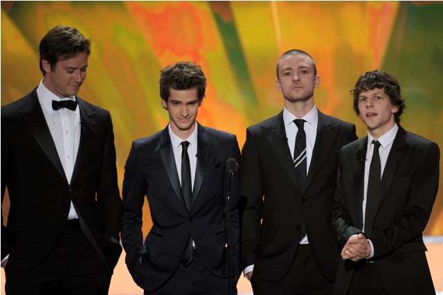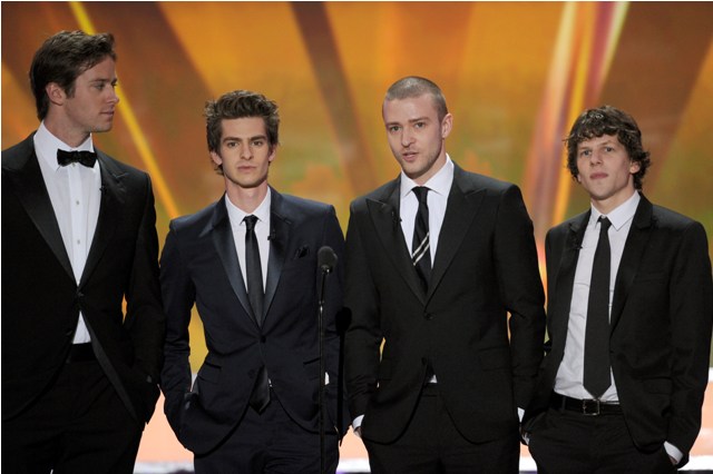 Click here for a refresher on what I wrote last week. When JT doesn’t show up, The Social Network cleans up. When he does show up, like at the Producers Guild, TSN gets no love. Justin attended the SAGs last night.