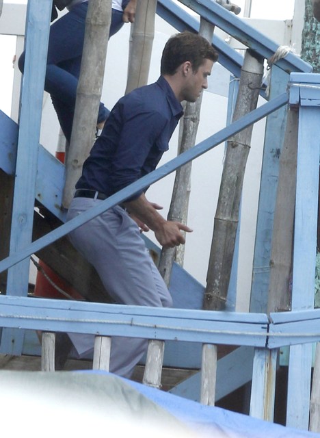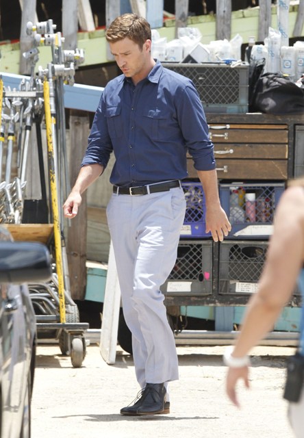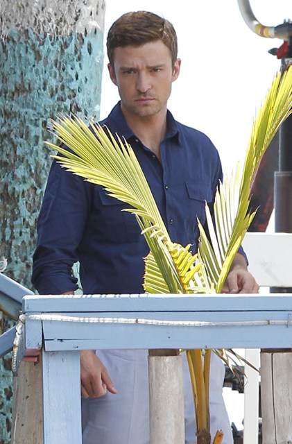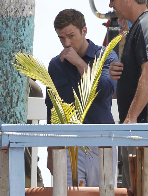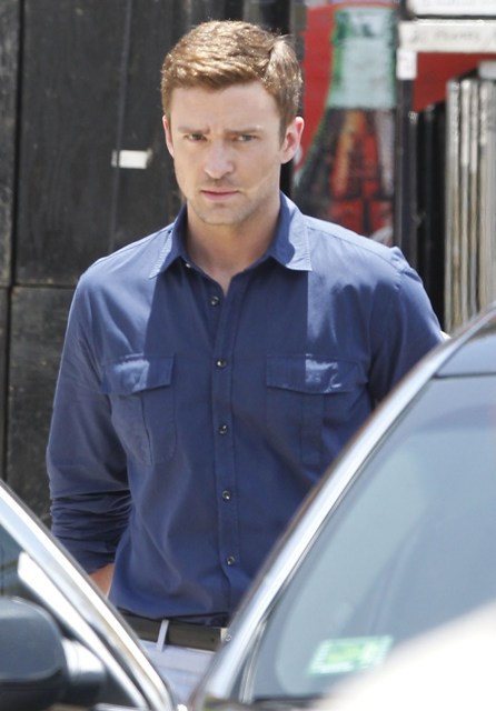 This is Justin Timberlake in Puerto Rico on the set of his new movie Runner, Runner, hair straightened and parted. Is this the formula? When JT's in a comedy he can keep the natural curl. If it's drama or action, we relax that sh-t or buzz it off. There's your key to understanding JT's character development.