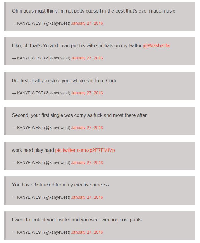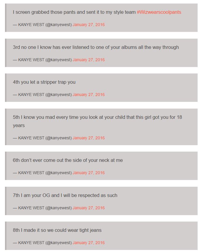 What’s sad is I love Wiz and I love all all my brothers and all people— KANYE WEST (@kanyewest) January 27, 2016