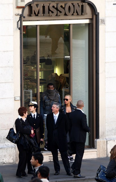 He was everyone’s punchline last night at the Country Music Awards but Kanye was far away in Europe, spotted in Rome buying sh-t for Amber Rose.