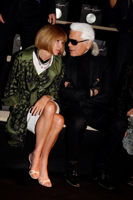 Anna and Karl are tight. Karl will not leave Anna. Anna just featured his Parisien apartment in the latest issue of the magazine (it’s a crazy sick spread, you MUST see it), Anna won’t let anyone criticise Karl’s work, and while Karl and Chanel aren’t everything, of course not, I’m told Karl has made it clear that Anna has no substitute and anyone who disagrees with his genius is idiot and demode and must be removed immediately from his presence!